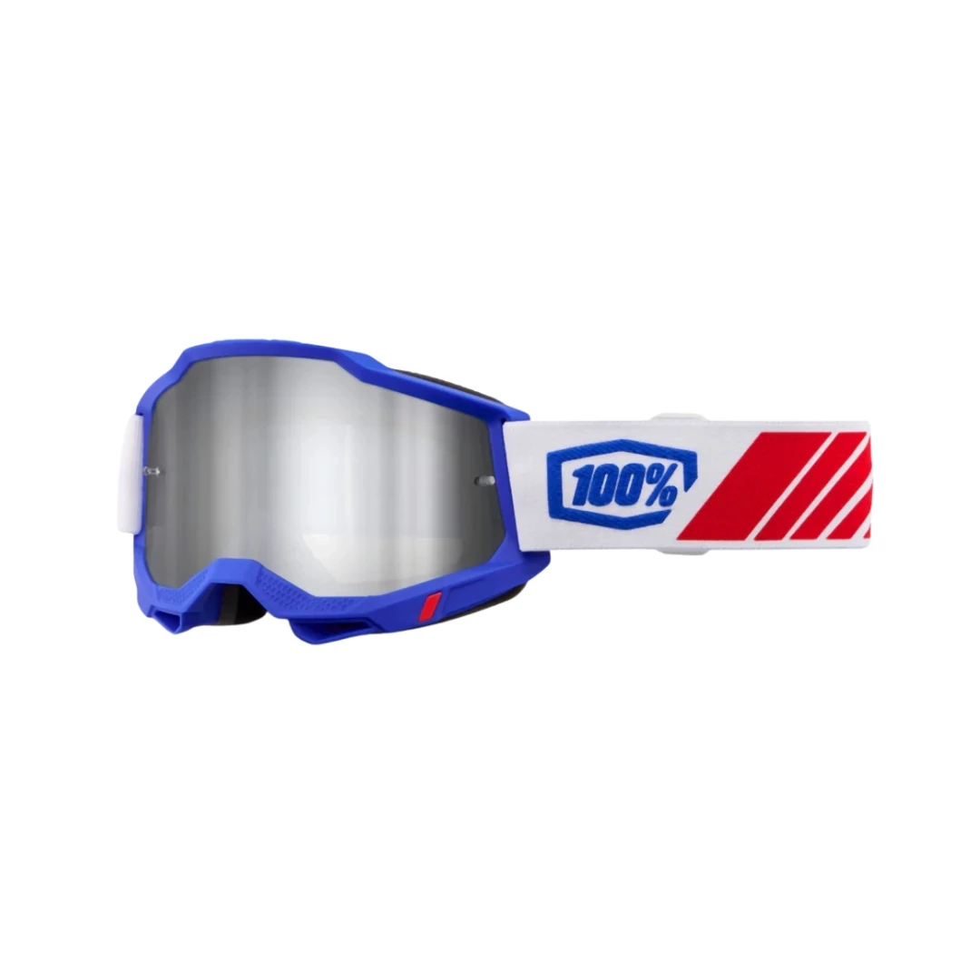 100% Accuri 2 Mirror Silver Lens Red/White/Blue este alegerea ideală pentru riderii care caută protecție de top, confort avansat și un design atrăgător, pregătiți să facă față provocărilor de pe orice teren.