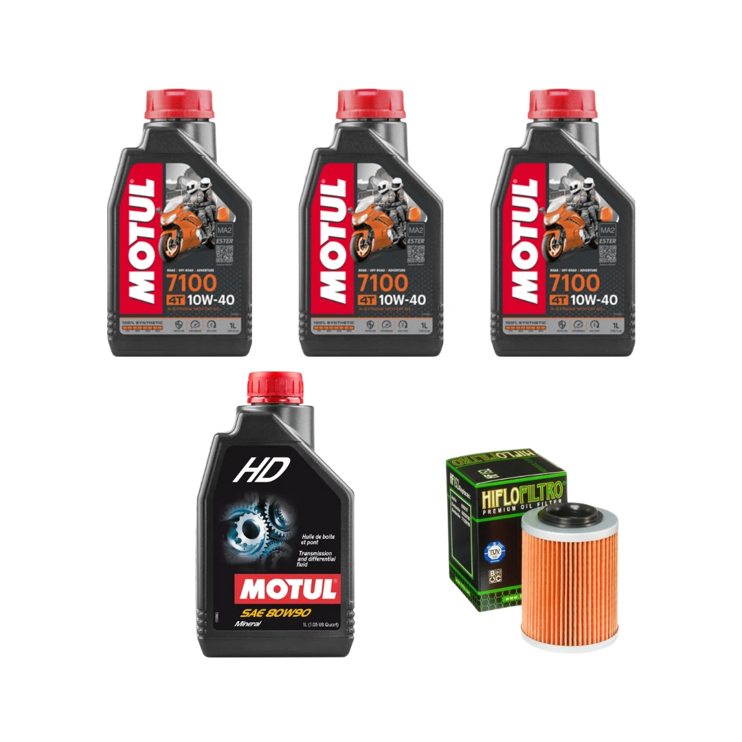 Pachet revizie atv CF MOTO CFORCE, uleiuri MOTUL 7100 10W40, HD 80W90 si filtru HF152