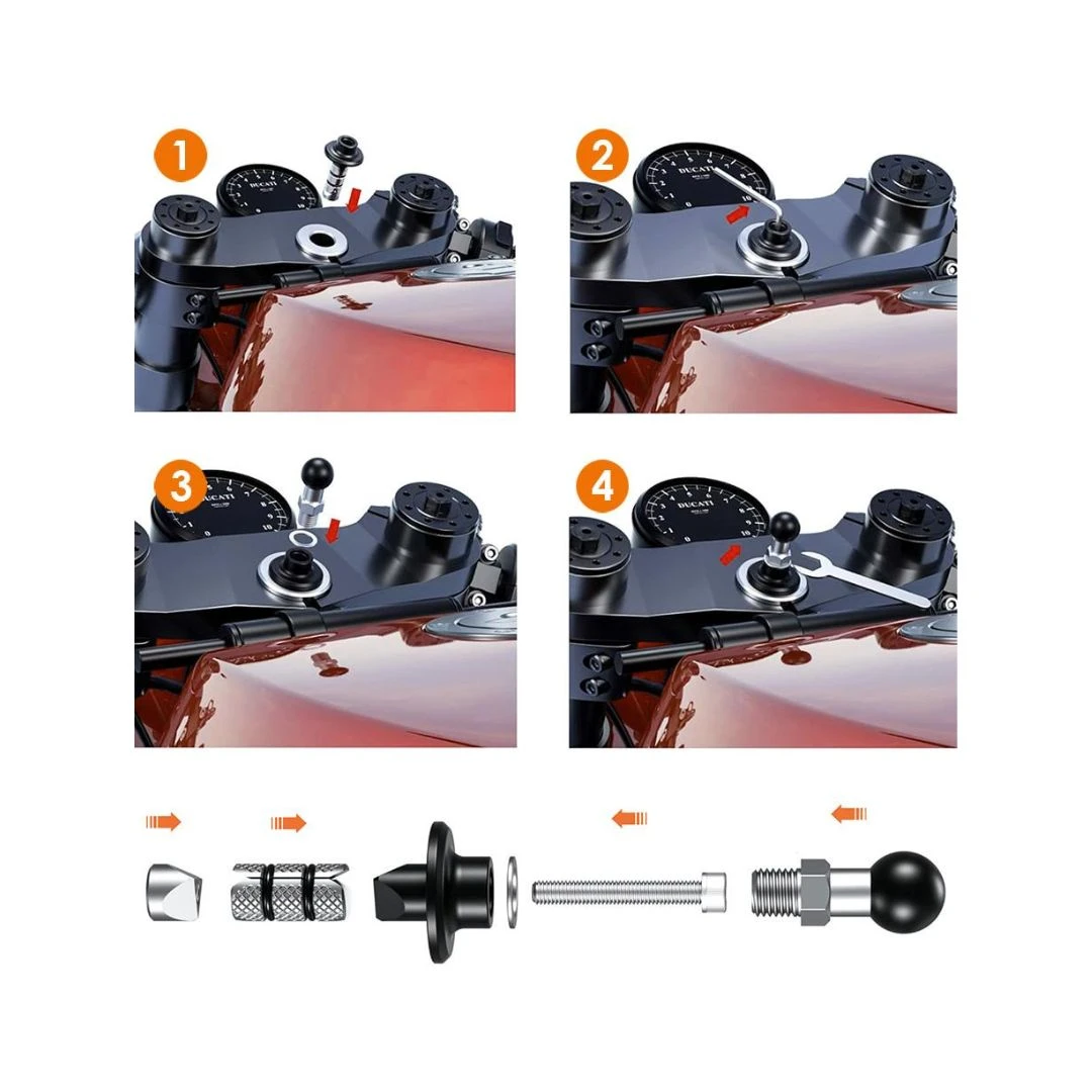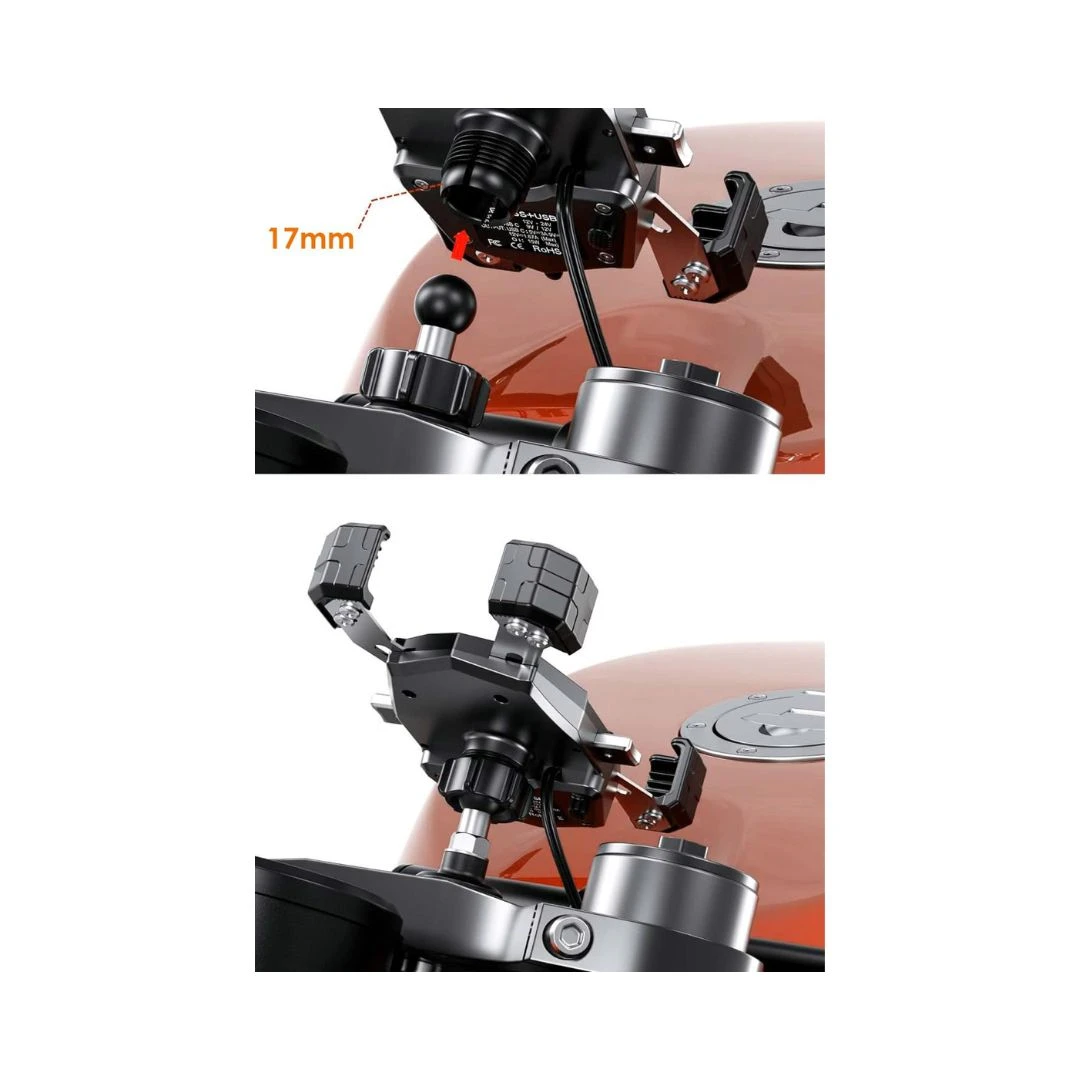 Adaptorul FSM17 oferă o soluție solidă pentru montarea suportului telefonului, fără a ocupa spațiu pe ghidon, ideal pentru motocicliști și bicicliști care doresc o instalare durabilă și flexibilitate în ajustarea unghiului de vizualizare.