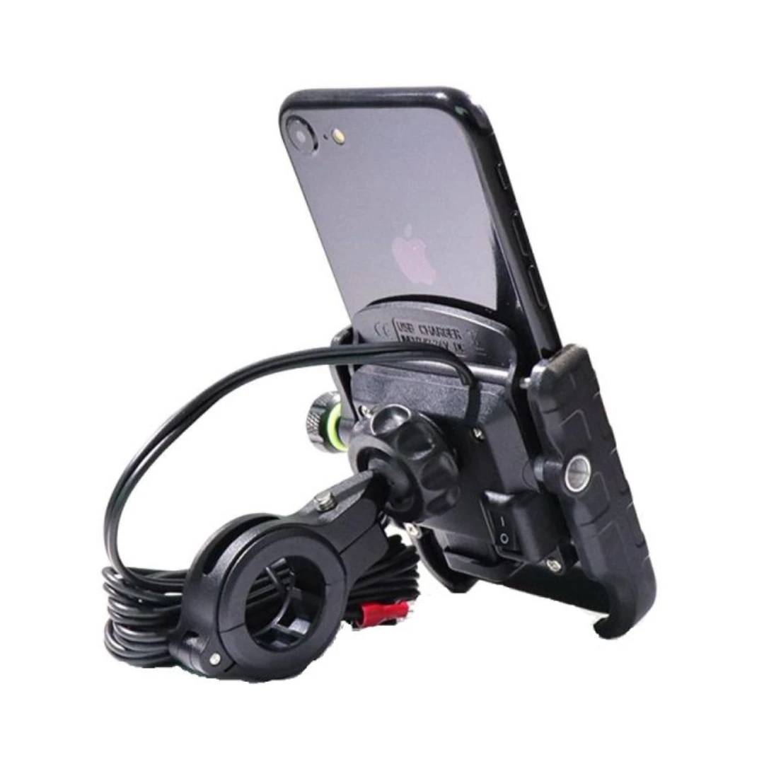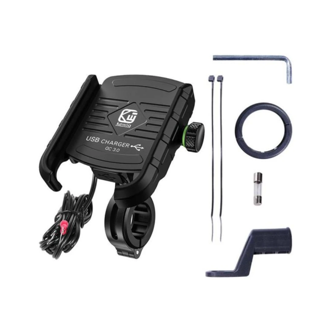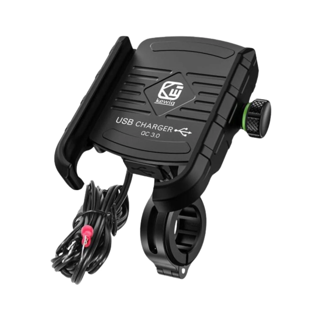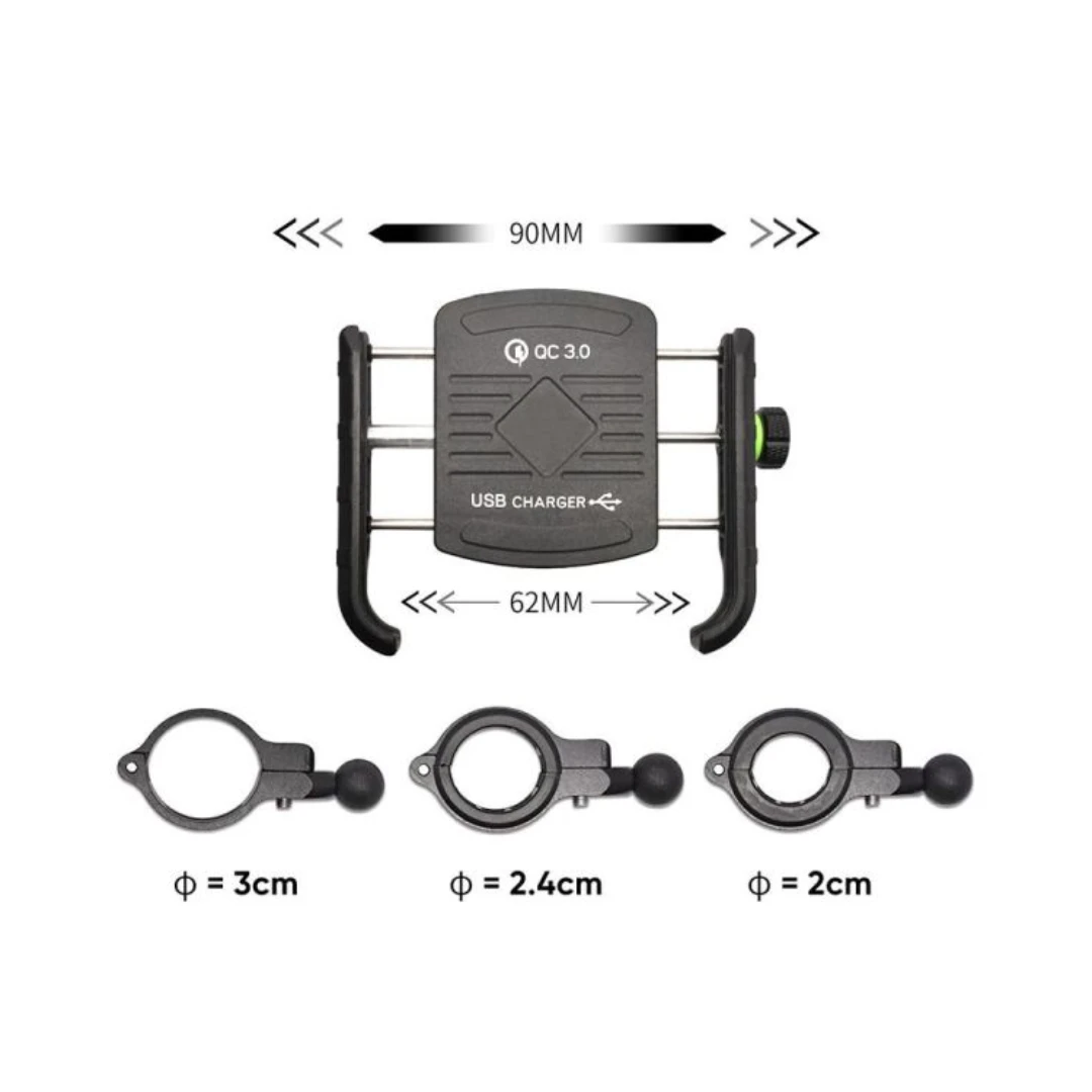 Suportul telefon moto R9W este dotat cu un port USB care suportă tehnologia Quick Charge 3.0, asigurând încărcarea rapidă a dispozitivelor mobile.