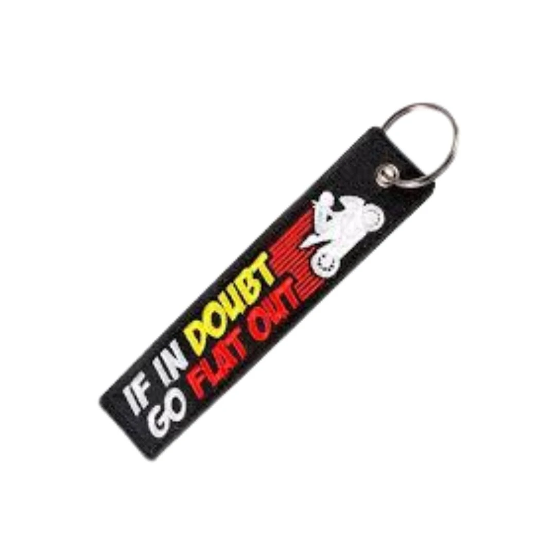 Breloc moto textil "If in doubt go flat out"