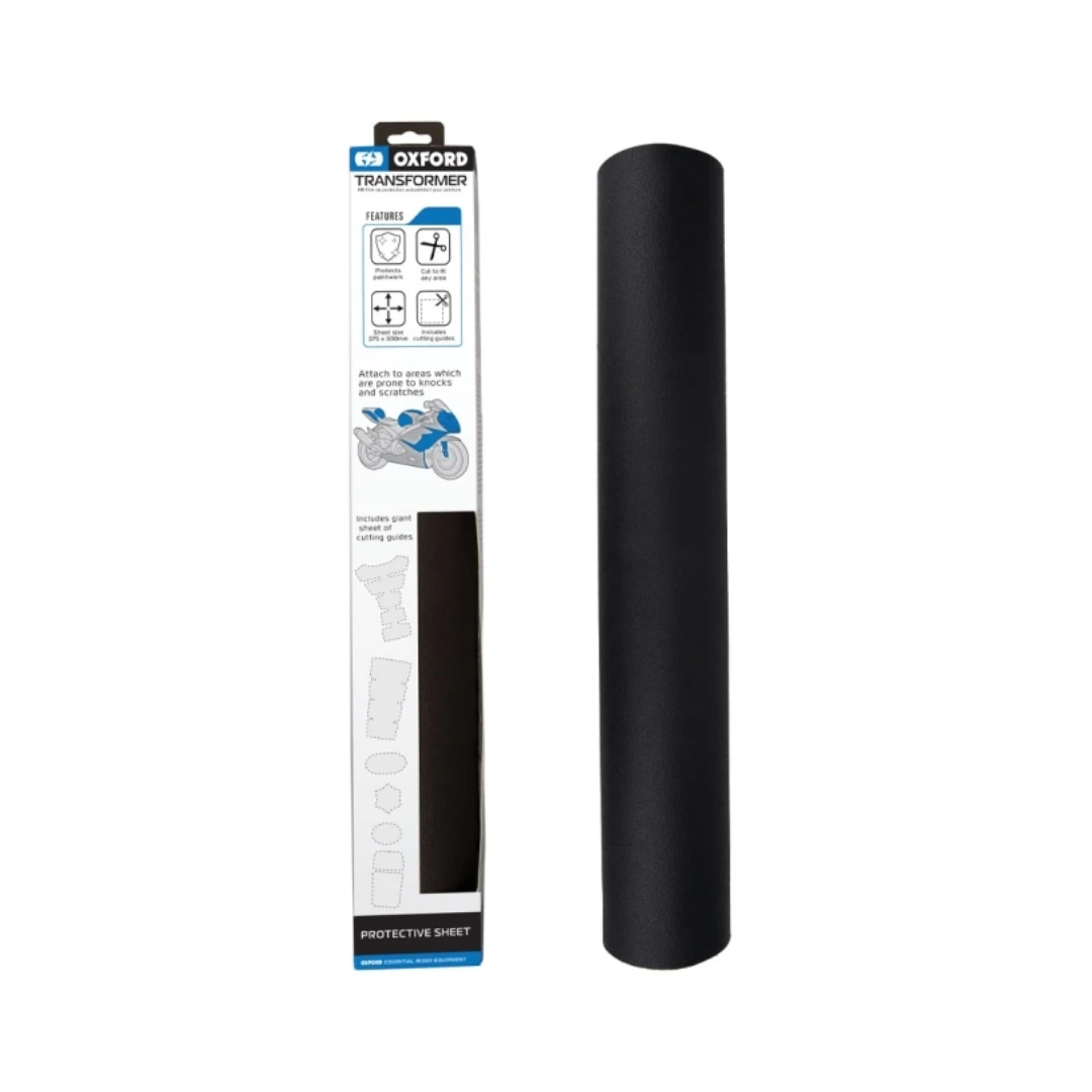 Oxford Transformer Sheet este soluția ideală pentru protejarea zonelor sensibile ale motocicletei tale împotriva zgârieturilor, loviturilor și uzurii. Foaia poate fi decupată ușor pentru a se potrivi perfect în orice zonă a motocicletei, fie că este vorba despre rezervor, laterale, carene sau alte părți expuse.