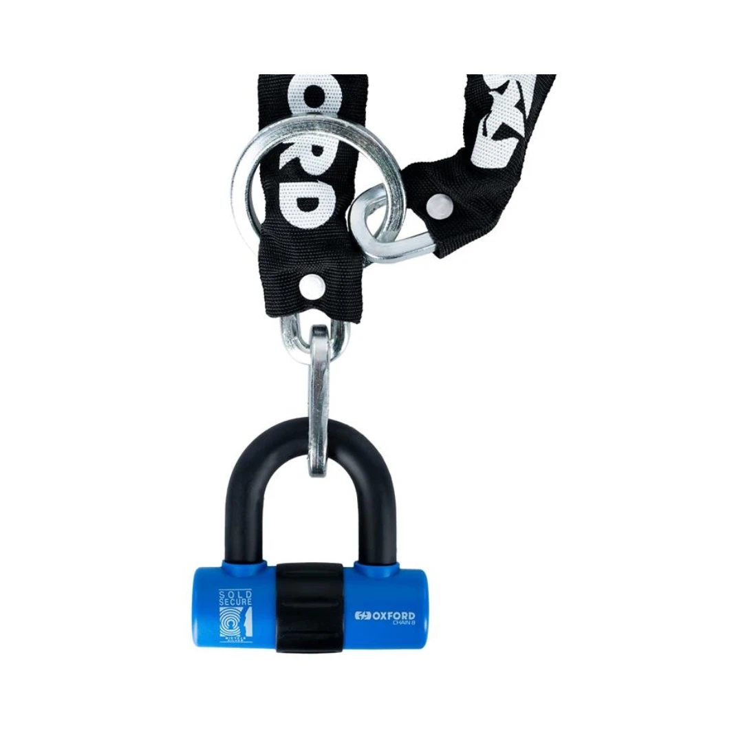 Oxford Chain 8 este o soluție practică și versatilă pentru protecția motocicletei, bicicletei sau scuterului, atât acasă, cât și în deplasare. Lanțul din zale pătrate de 8 mm din oțel călit, combinat cu un lacăt robust HD Mini, oferă un nivel ridicat de securitate într-un format ușor de transportat.