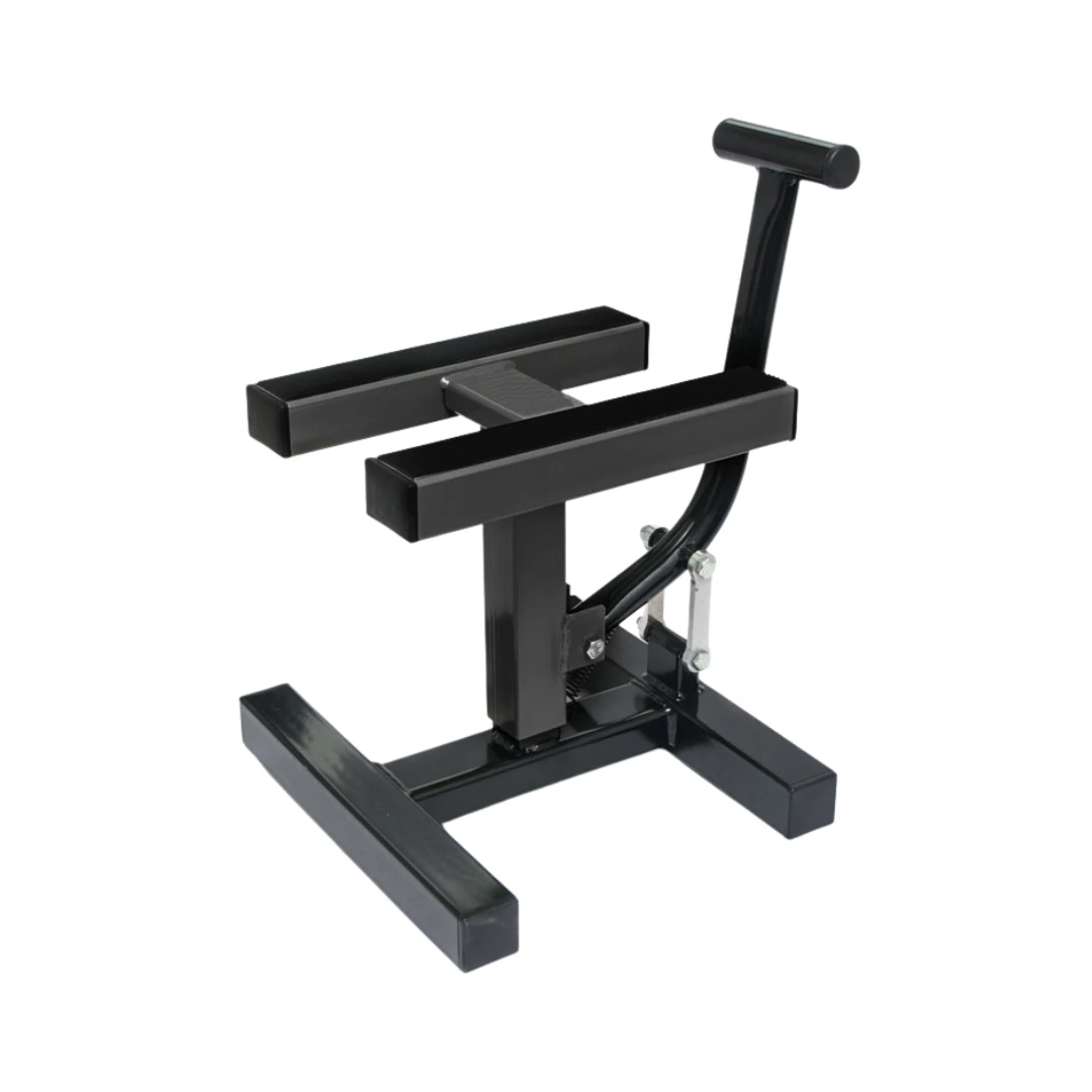 - Ideal pentru riderii care au nevoie de un suport stabil, funcțional și ușor de folosit, fie în garaj, fie pe pistă.