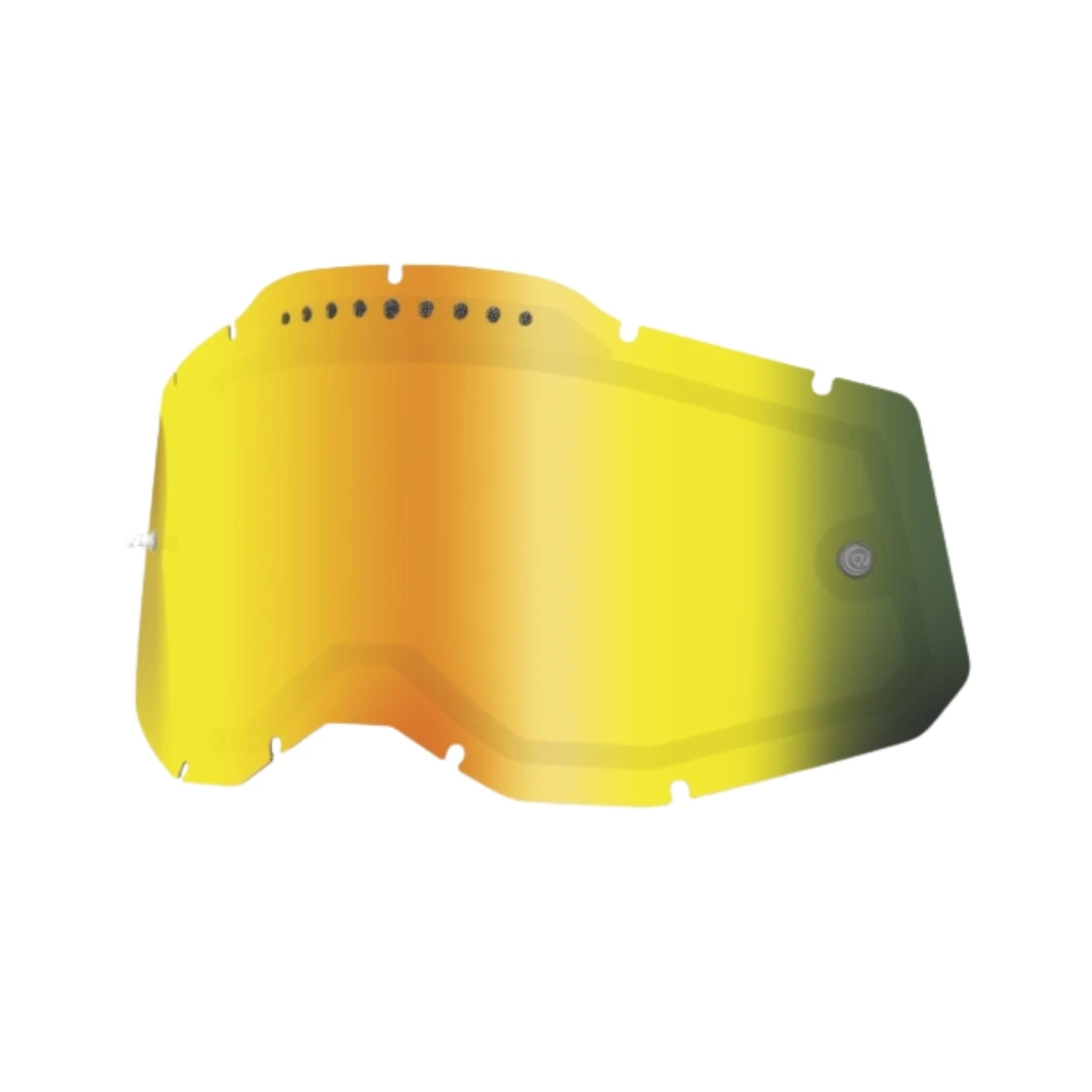 Lentila de schimb 100% Dual Pane Mirror Gold este proiectată pentru riderii de motocross, enduro și mountain bike care vor vizibilitate maximă și performanță constantă în orice condiții. Compatibilă cu ochelarii Racecraft 2, Accuri 2 și Strata 2, această lentilă integrează tehnologii preluate din gama de top Armega, oferind un câmp vizual extins și confort superior.