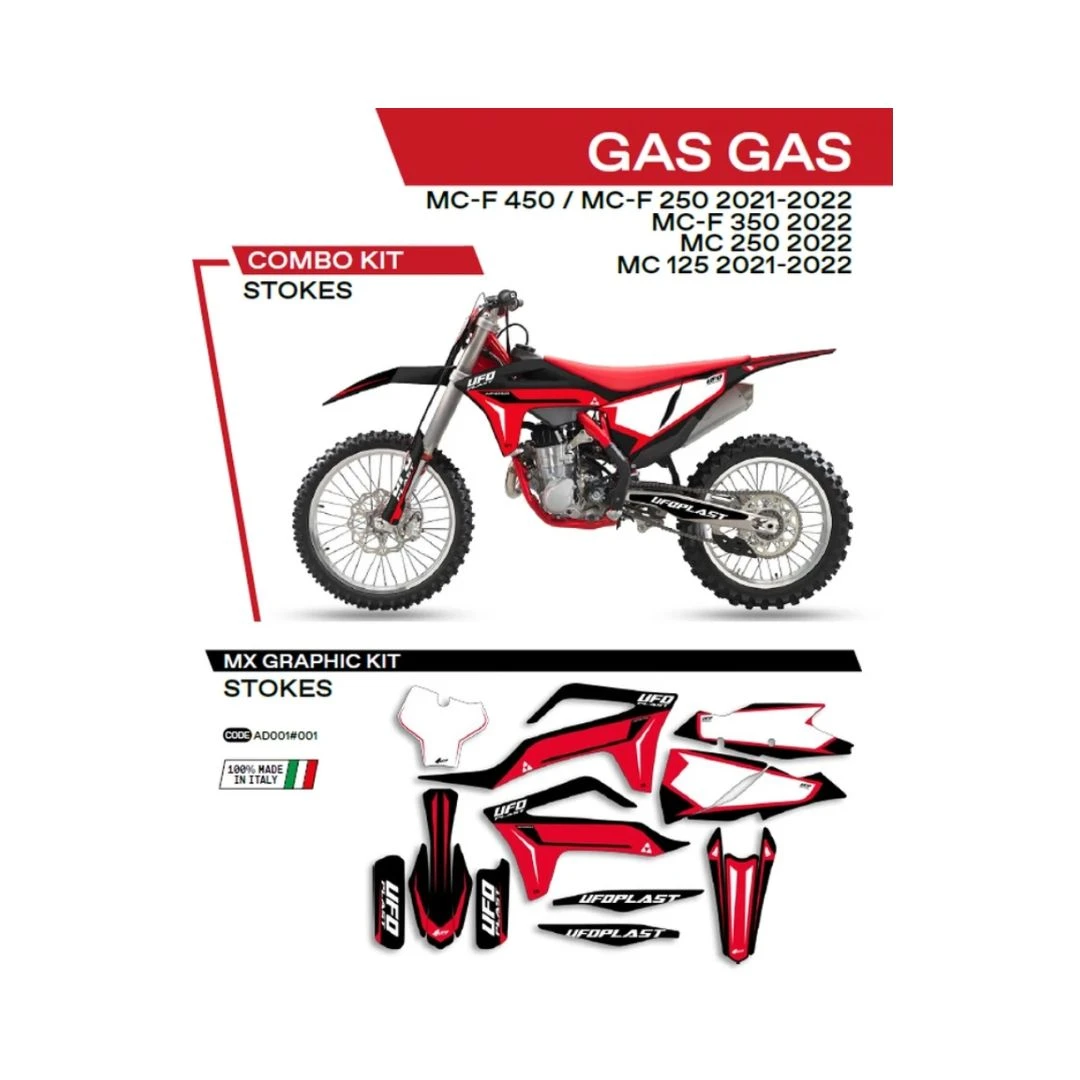 Kit grafic UFO GAS GAS MC 125 '21-'22; MC 250 '22; MCF 250/350/450 '21-'22 STOKES culoare Negru