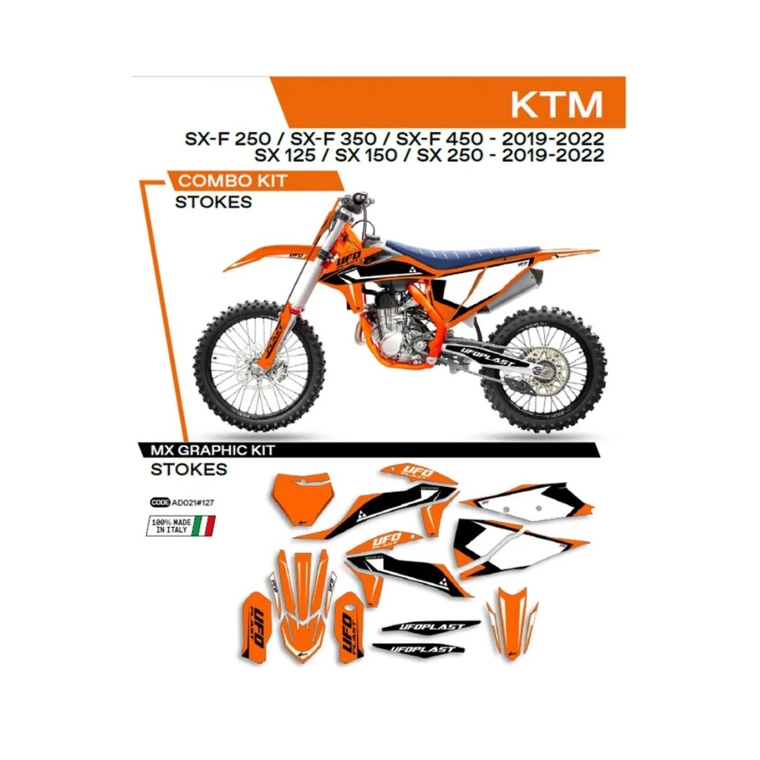 Kit grafic UFO KTM SX/SXF 125/150/250/350/450 '19-'22 STOKES culoare Portocaliu citește toată descrierea