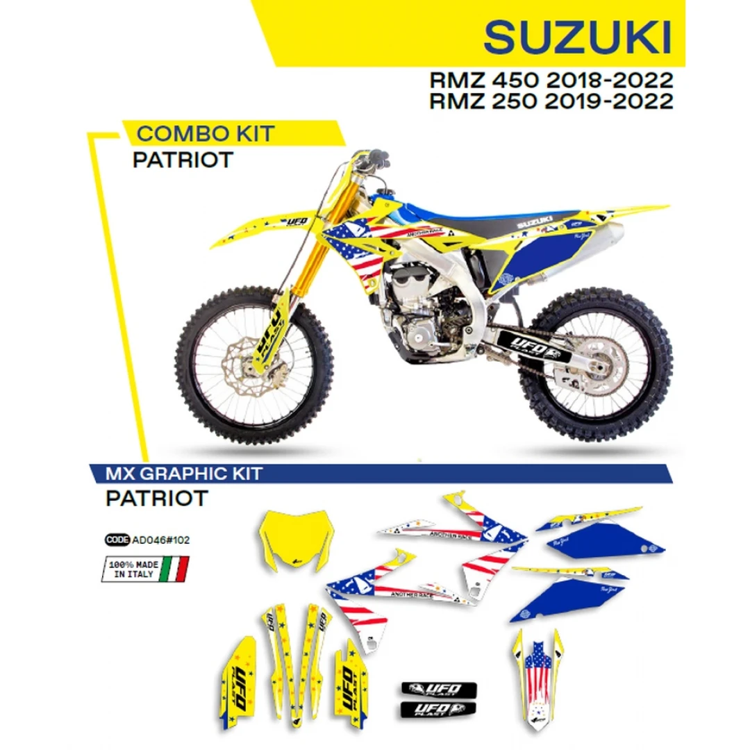 Kit grafic UFO SUZUKI RMZ 250 '19-'22; RMZ 450 '18-'22 PATRIOT culoare Galben citește toată descrierea