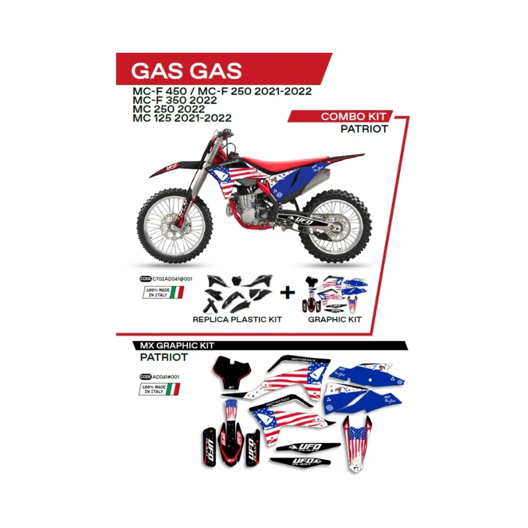 Kit complet plastice UFO GGKIT702001 include Stickere GAS GAS MC 125 '21-'22; MC 250 '22; MCF 250/350/450 '21-'22 PATRIOT culoare Negru