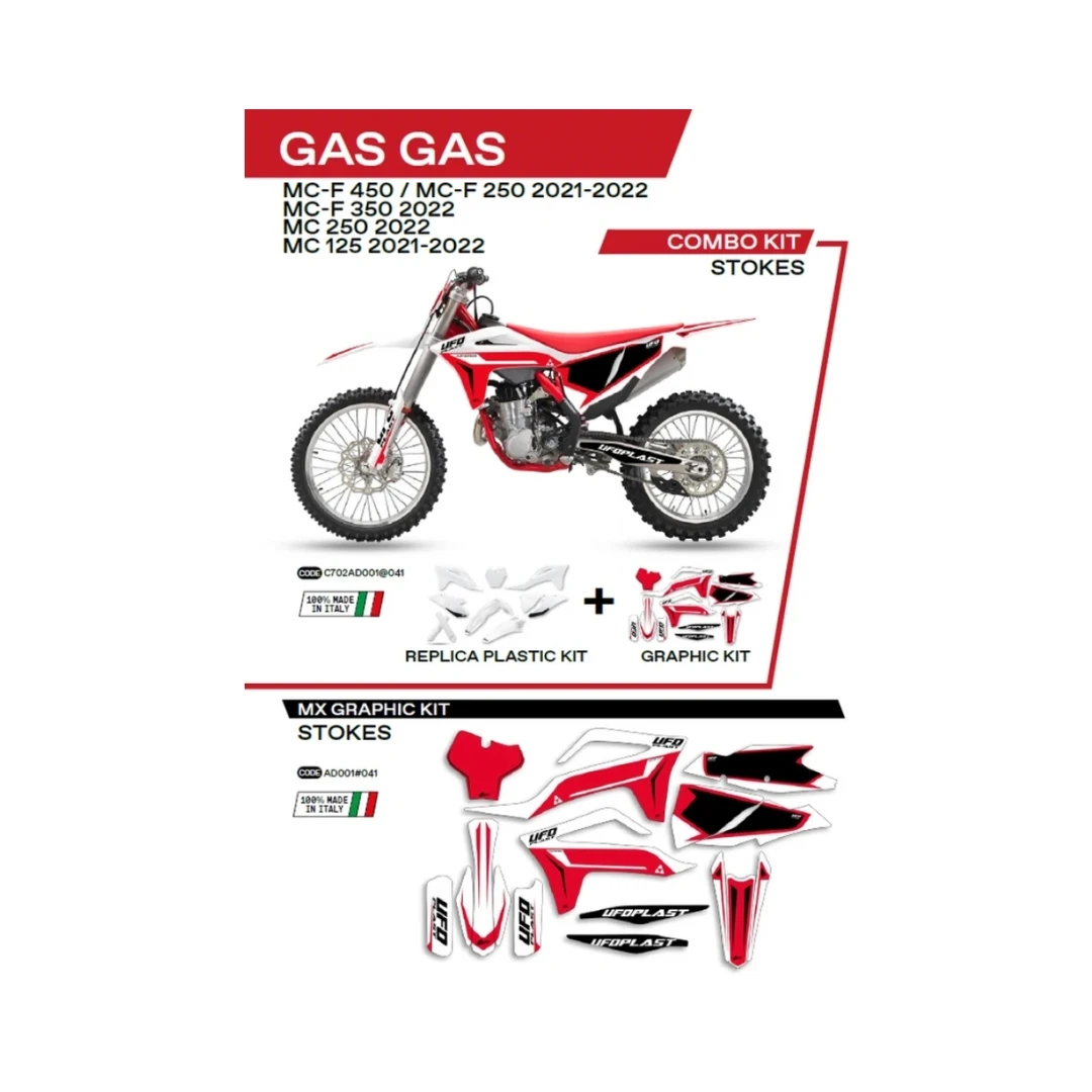 Kit complet plastice UFO GGKIT702041 include Stickere GAS GAS MC 125 '21-'22; MC 250 '22; MCF 250/350/450 '21-'22 STOKES culoare Alb