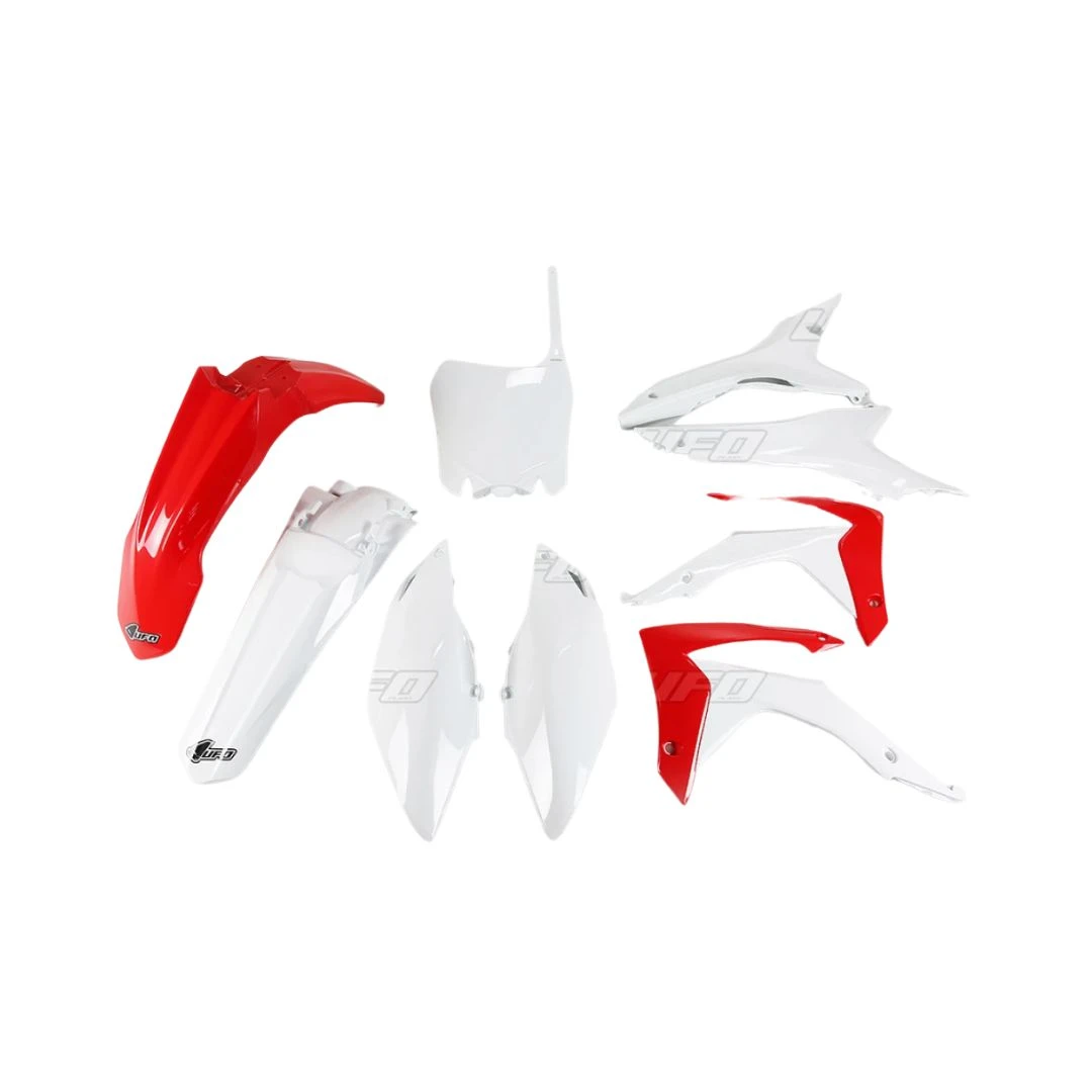 Kit complet plastice UFO HONDA CRF 250R 14-17, CRF 450R 13-16 culoare OEM (Rosu/Alb) (HO121E999) citește toată descrierea