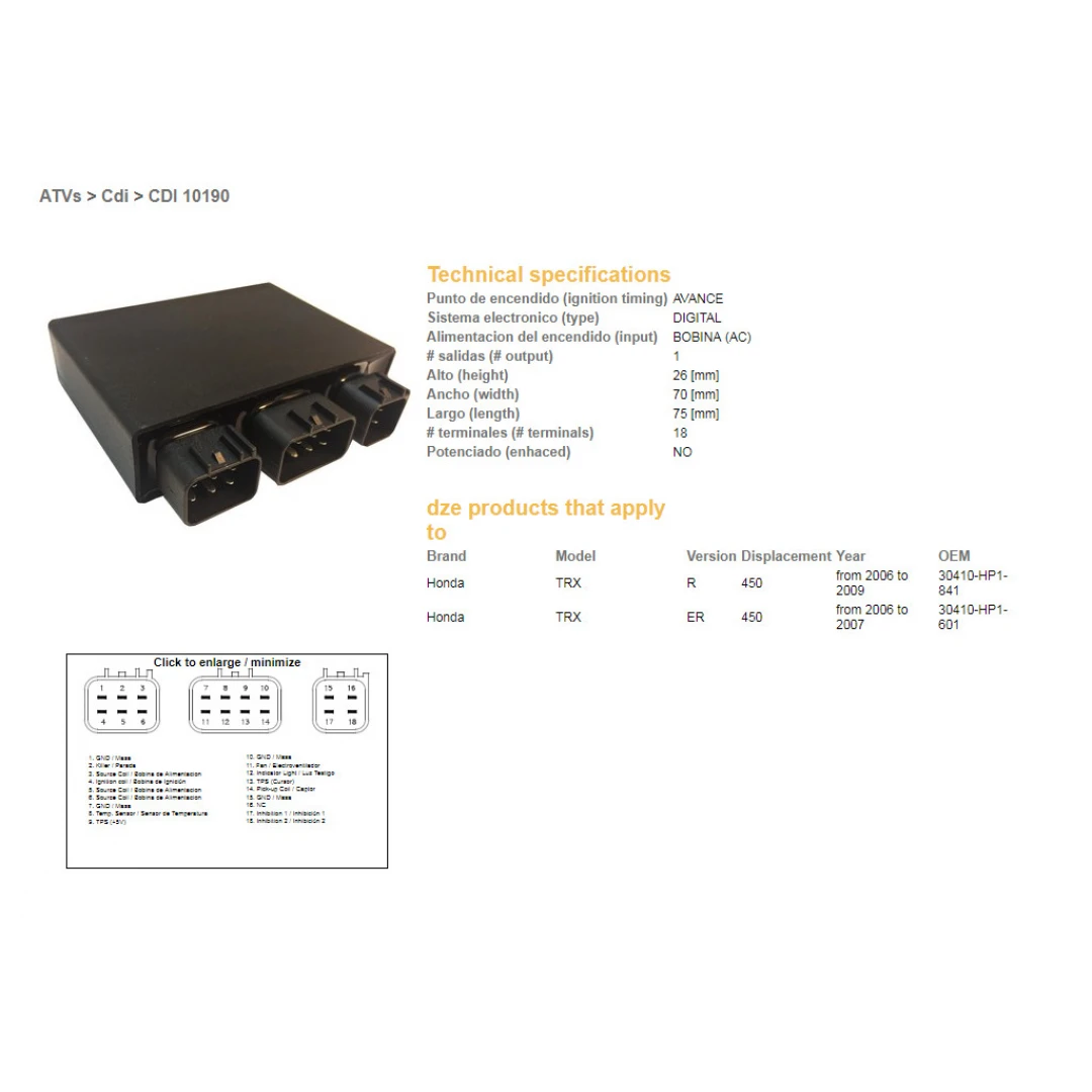 Modul aprindere CDI DZE HONDA TRX 450R 06-10 (OEM-30410-HP1-841) citește toată descrierea