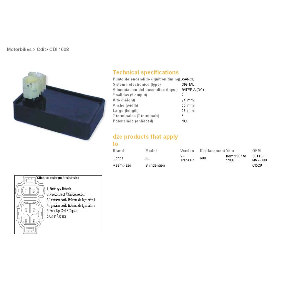 Modul aprindere CDI DZE HONDA XL 600 V TRANSALP (87-88) (30410-MM9-008) citește toată descrierea