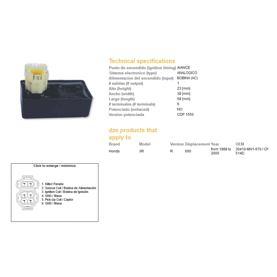Modul aprindere CDI DZE HONDA XR 600R 88-00 (CF514D) (30410-MN1-670) citește toată descrierea