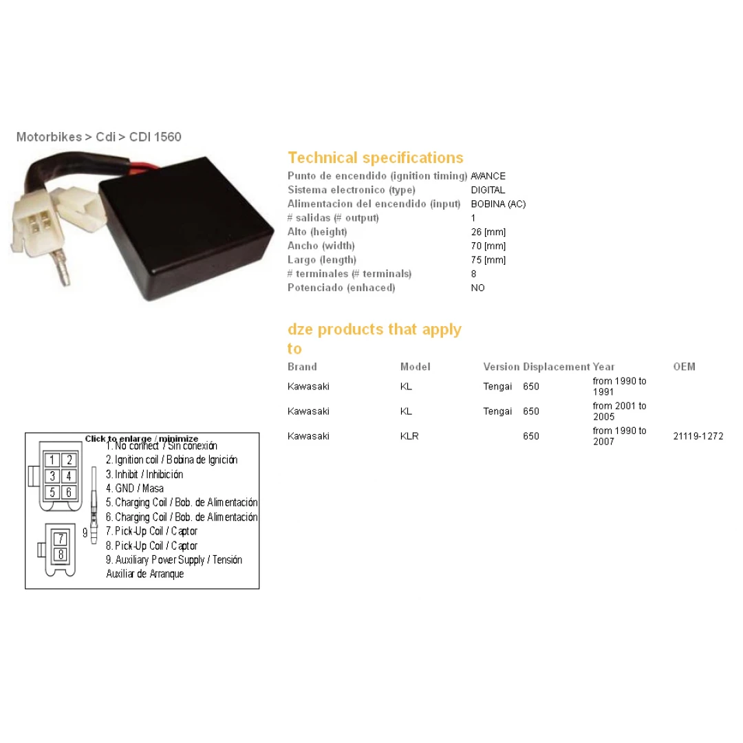 Modul aprindere CDI DZE KAWASAKI KLR650 90-07 (OEM21119-1272) citește toată descrierea