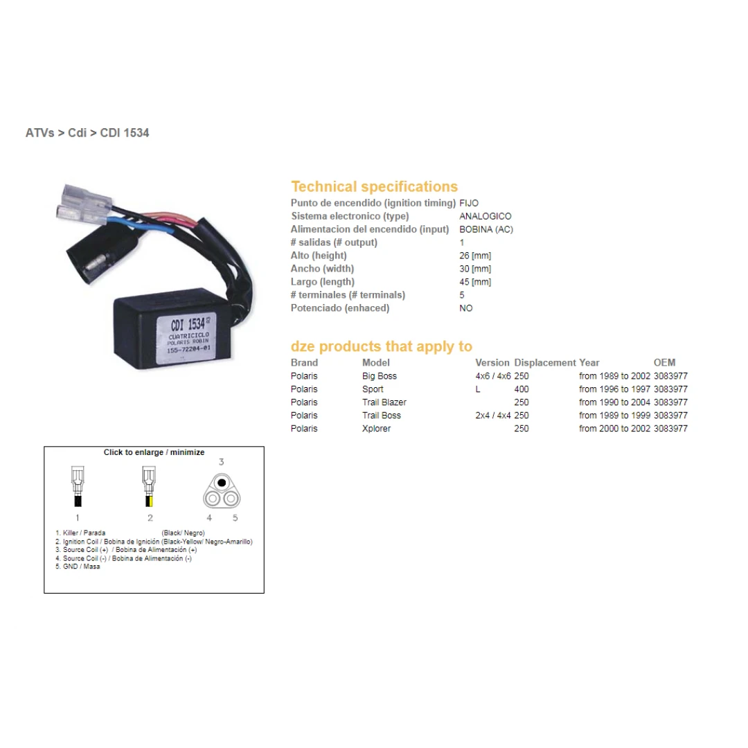Modul aprindere CDI DZE POLARIS 250 '89-'04, 400 SPORT '96-'97 citește toată descrierea