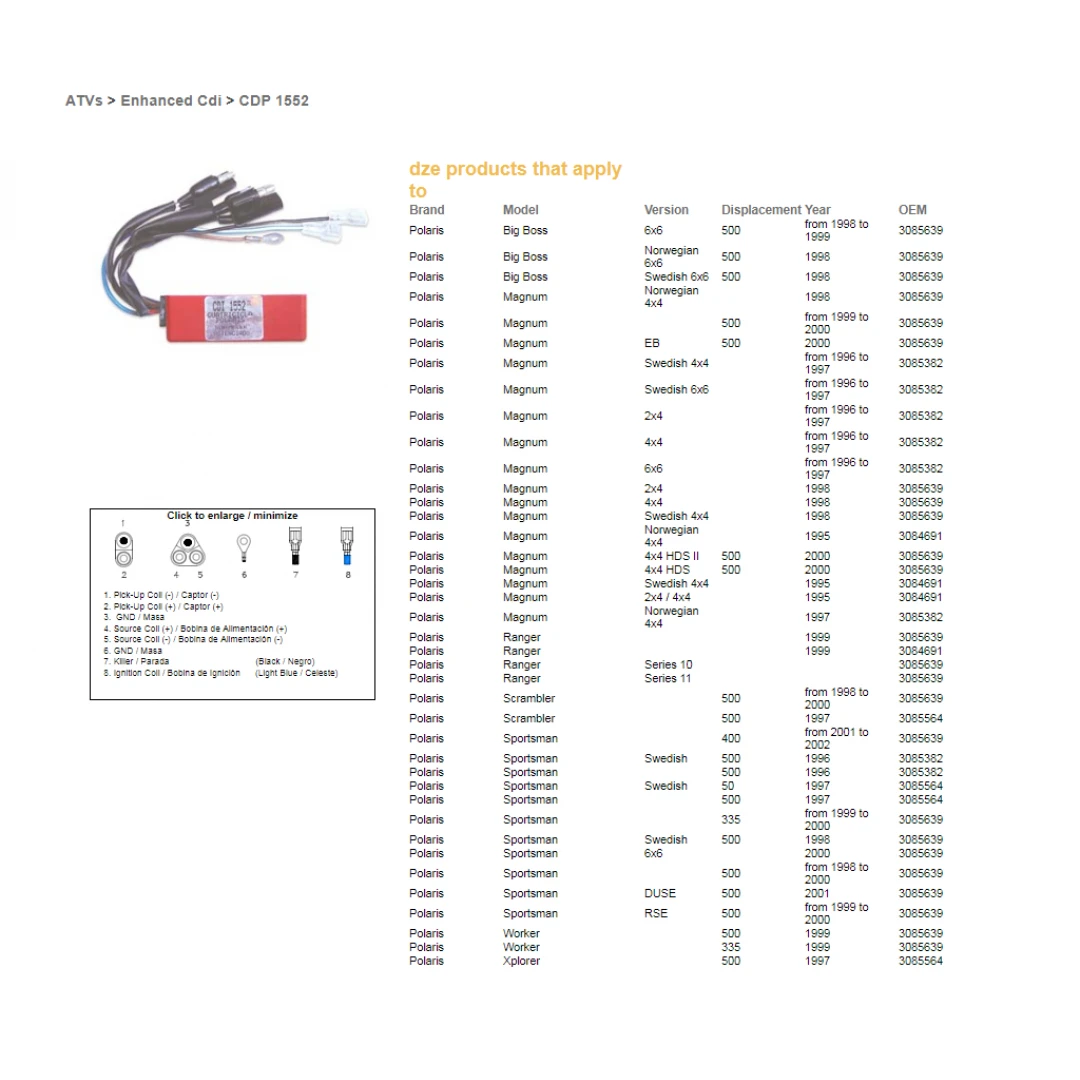 Modul aprindere CDI DZE POLARIS SPORTSMAN 500 (96-00), 400 (01-02), SCRAMBLER 500 (97-00) - ZASTĘPUJE 1357-01 citește toată descrierea