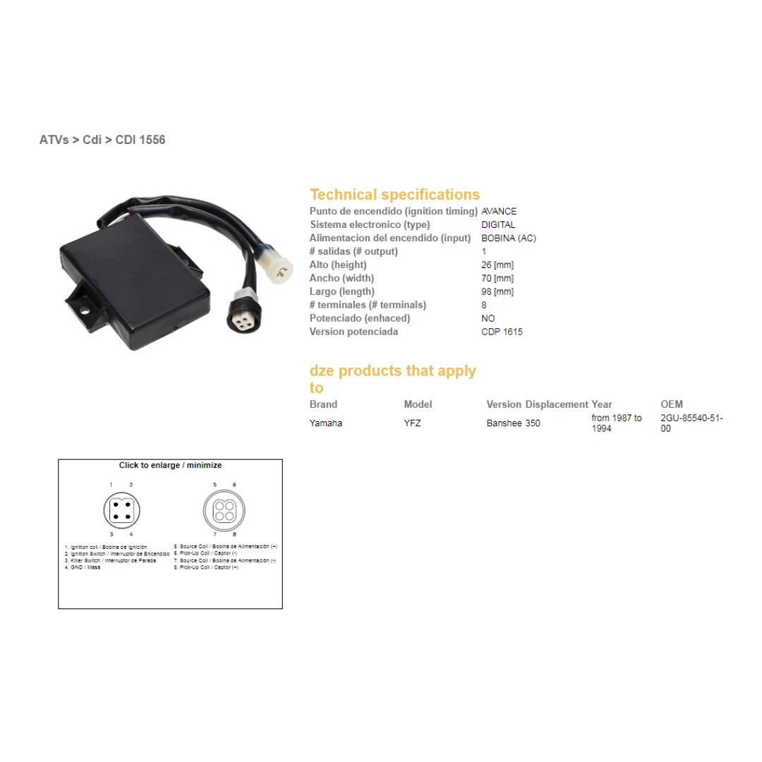 Modul aprindere CDI DZE YAMAHA YFZ350 BANSHEE 87-94 MULTIMAPA citește toată descrierea