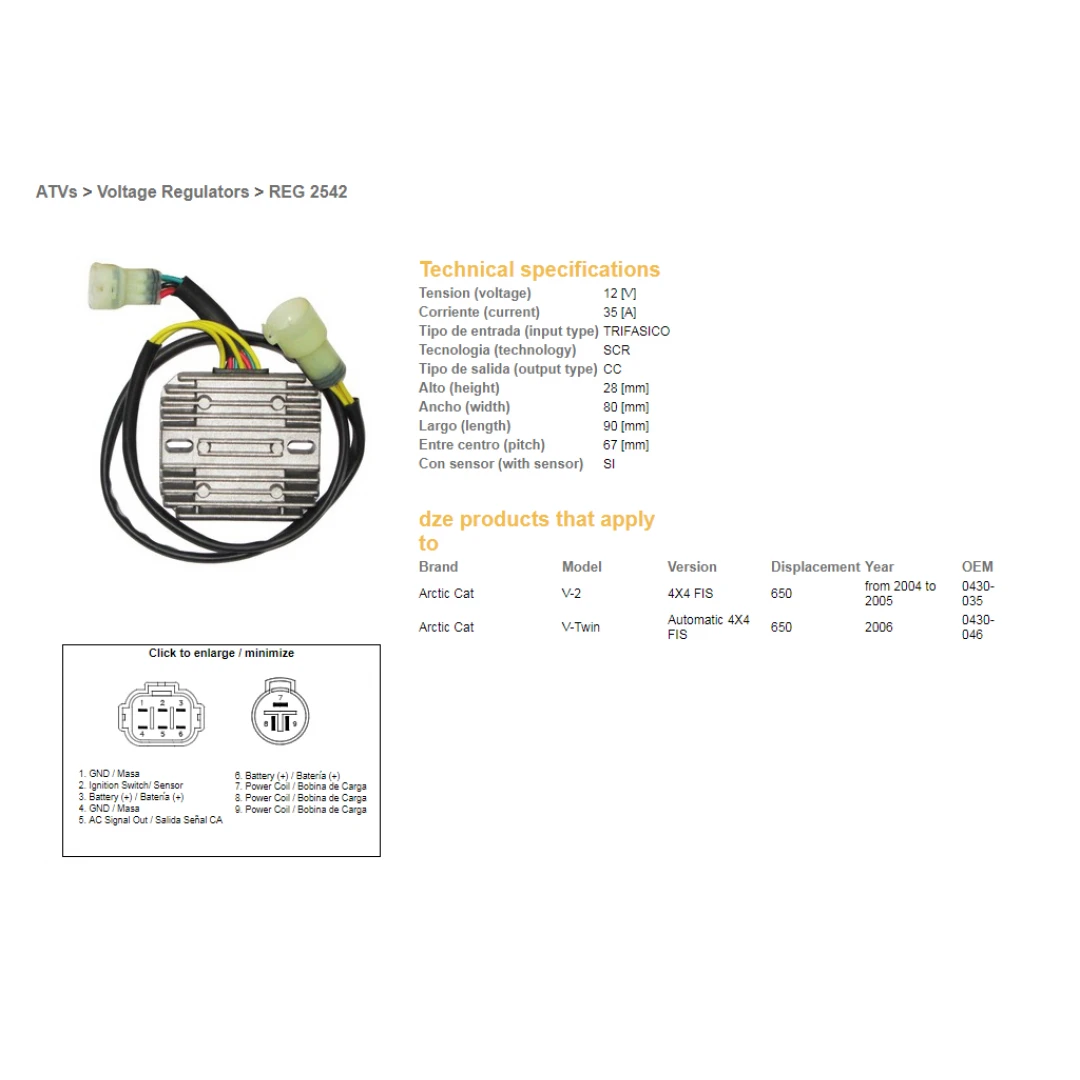 Regulator tensiune DZE ARCTIC CAT 650 '04-'06 (OEM-0430-035, 0430-046) 12V35A citește toată descrierea