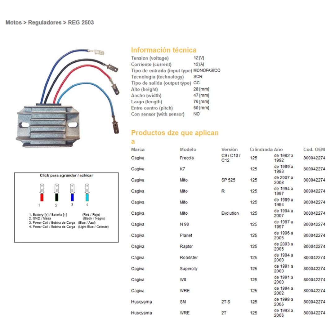 Regulator tensiune DZE CAGIVA 125 MITO/PLANET/RAPTOR, HUSQVARNA WRE125 93-06, SM 125 '93-'06 (OEM-800042274)
