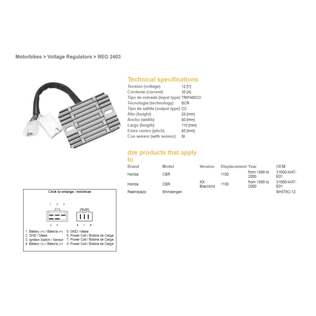 Regulator tensiune DZE HONDA CBR1100XX 99-00 (31600-MAT-E01) (SH579C-12) (ESR684) citește toată descrierea
