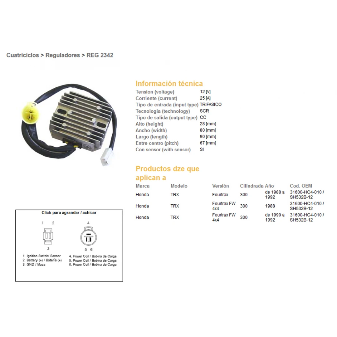 Regulator tensiune DZE HONDA TRX300 FOURTRAX 88-92 (SH532B-12) (31600-HC4-010) (ESR125) citește toată descrierea
