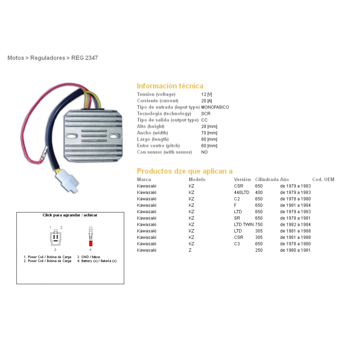 Regulator tensiune DZE KAWASAKI KZ440 LTD 79-83, KZ650 CSR/C/SR/LTD 78-84 (JEDNOFAZOWY) citește toată descrierea