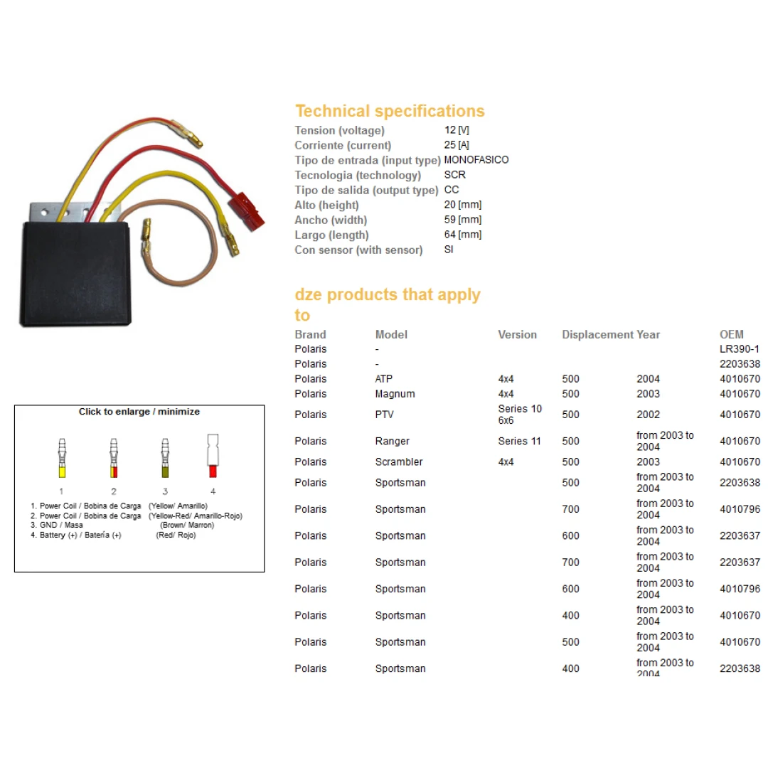 Regulator tensiune DZE POLARIS 400/500/600/700 SPORTSMAN SCRAMBLER 03-04 (OEM:4010796, 2203638) citește toată descrierea