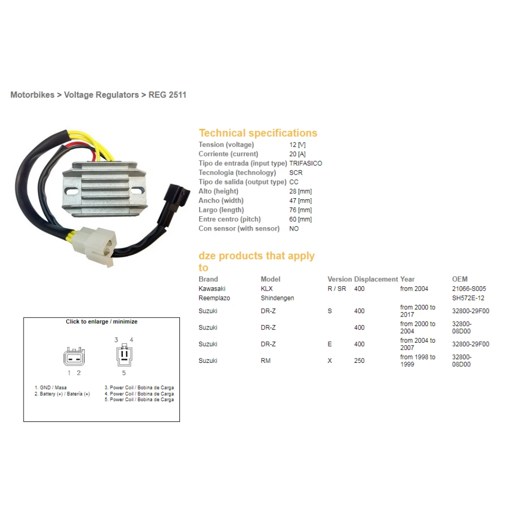 Regulator tensiune DZE SUZUKI DRZ 400/E/S '00-'17 (32800-29F00, 32800-08D00) (SH572E-12) (ESR105) citește toată descrierea