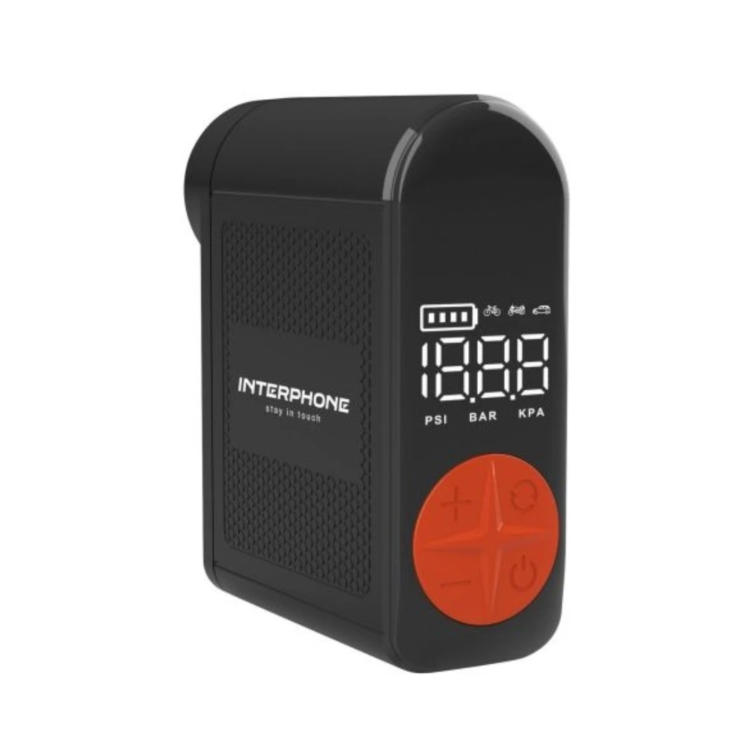 Interphone Air Pump Mini este un compresor de aer portabil compact, conceput pentru motociclete, ATV-uri, scutere și autoturisme. Datorită dimensiunilor reduse și performanței ridicate, acest compresor este accesoriul ideal pentru motocicliști și șoferi care doresc să mențină presiunea corectă în anvelope oriunde s-ar afla.