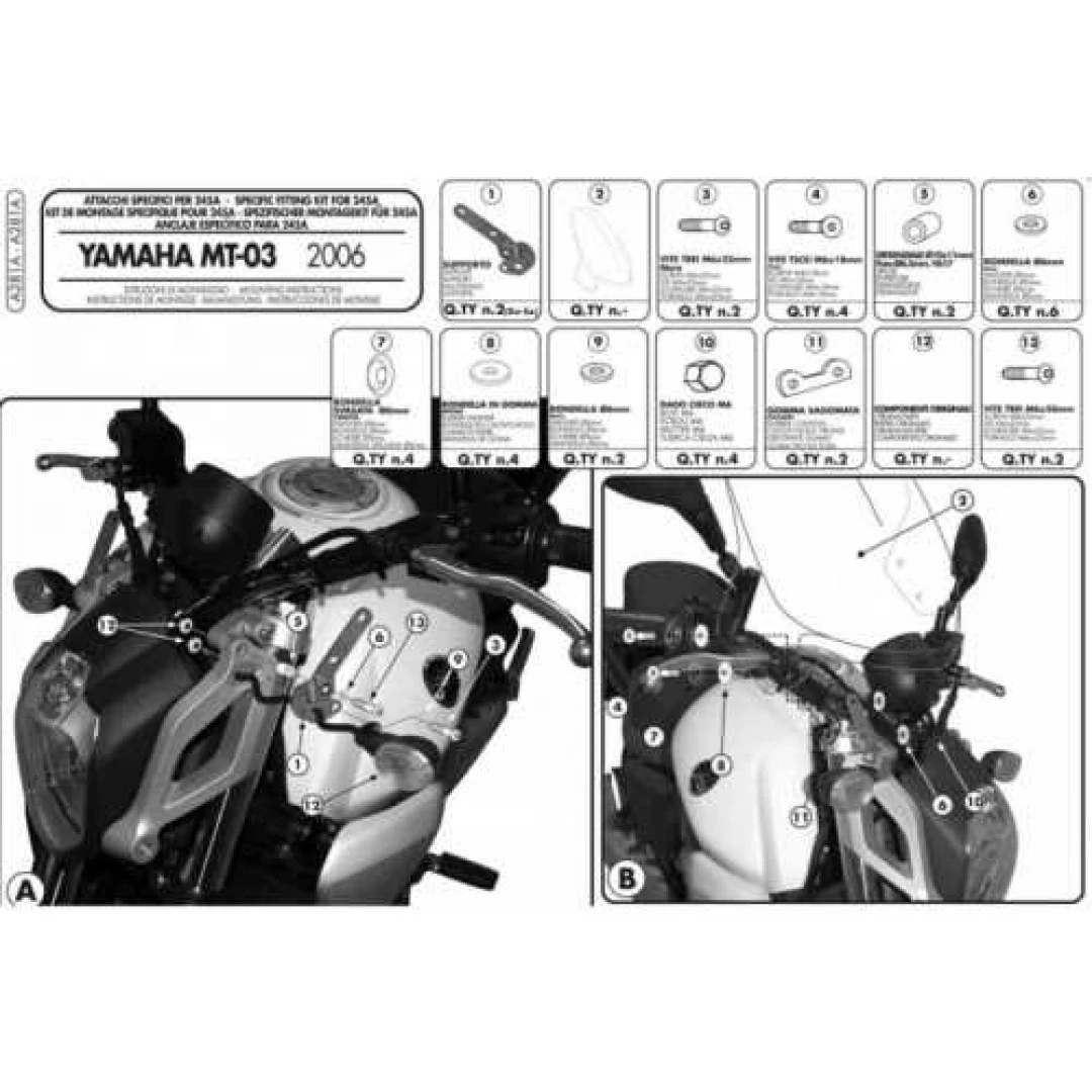 Suport parbriz KAPPA - 245A, 245N, 246 YAMAHA MT 03 600 (06-14) citește toată descrierea