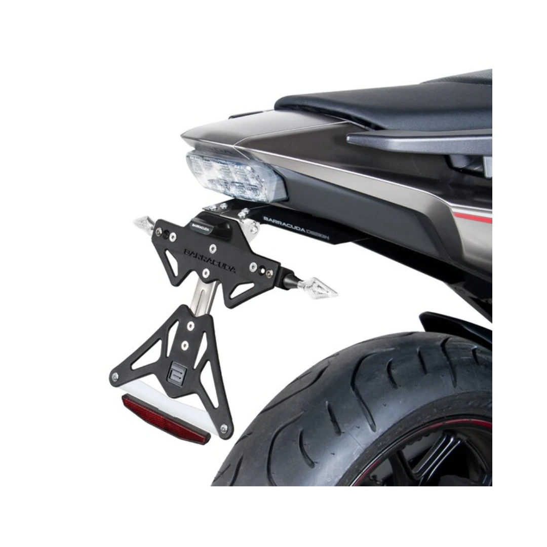 Kitul de suport pentru număr Barracuda dedicat modelelor Honda NC750X, NC750S și Integra 750 (2015-2020) oferă o soluție elegantă, rezistentă și perfect adaptată fiecărui model. Realizat cu tehnologie de tăiere laser pentru o precizie excelentă, suportul este construit din aluminiu eloxat negru și plastic dur, fiind completat de un element de ajustaj din oțel inoxidabil pentru stabilitate și durabilitate maximă.