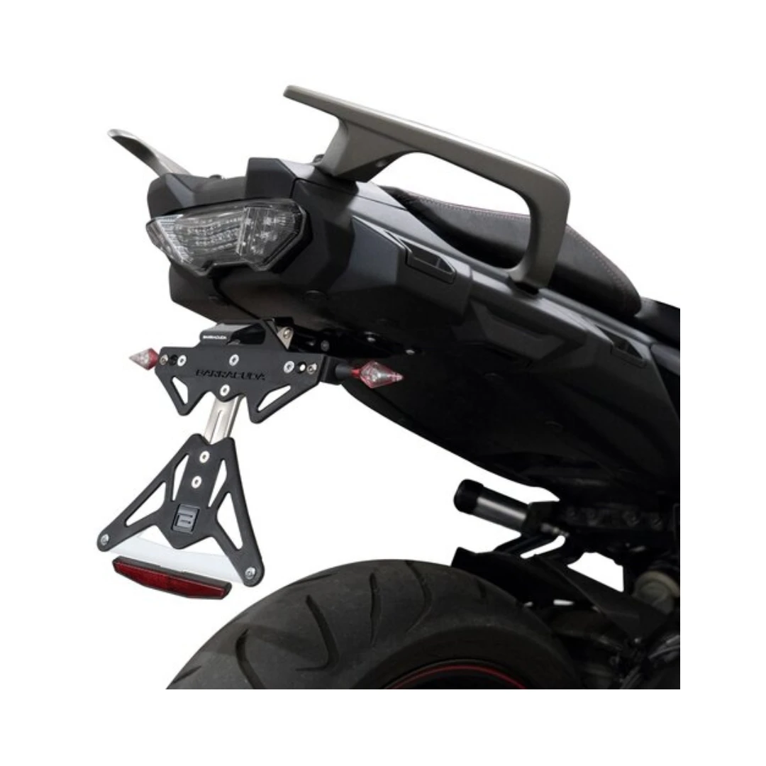 Kitul de suport pentru număr Barracuda dedicat modelelor Yamaha Tracer 900 și 900GT (2018-2023) este soluția ideală pentru un aspect modern, curat și sportiv al zonei spate. Realizat cu tehnologie de tăiere laser pentru o precizie excelentă, suportul este construit din aluminiu eloxat negru și plastic dur, fiind completat de un element de ajustaj din oțel inoxidabil pentru o rigiditate optimă.