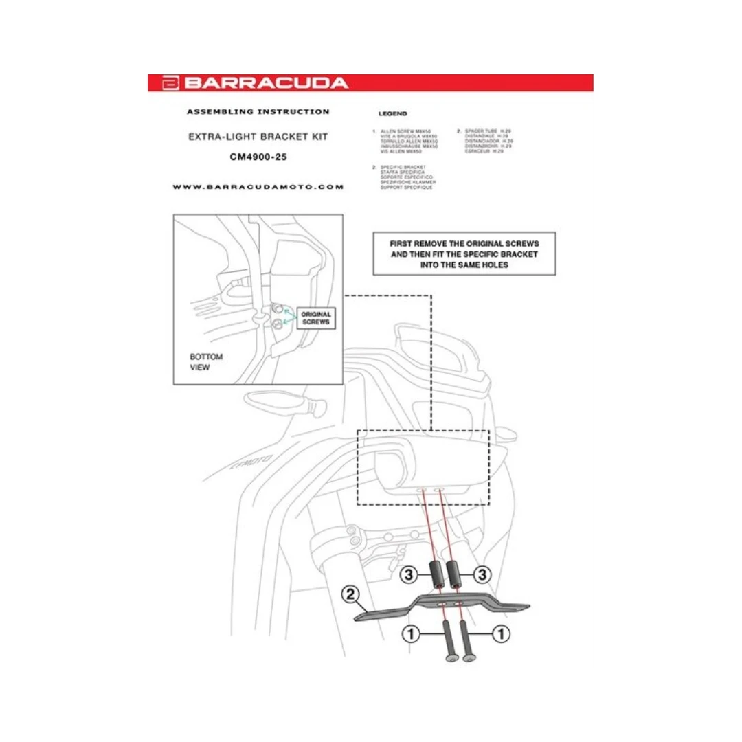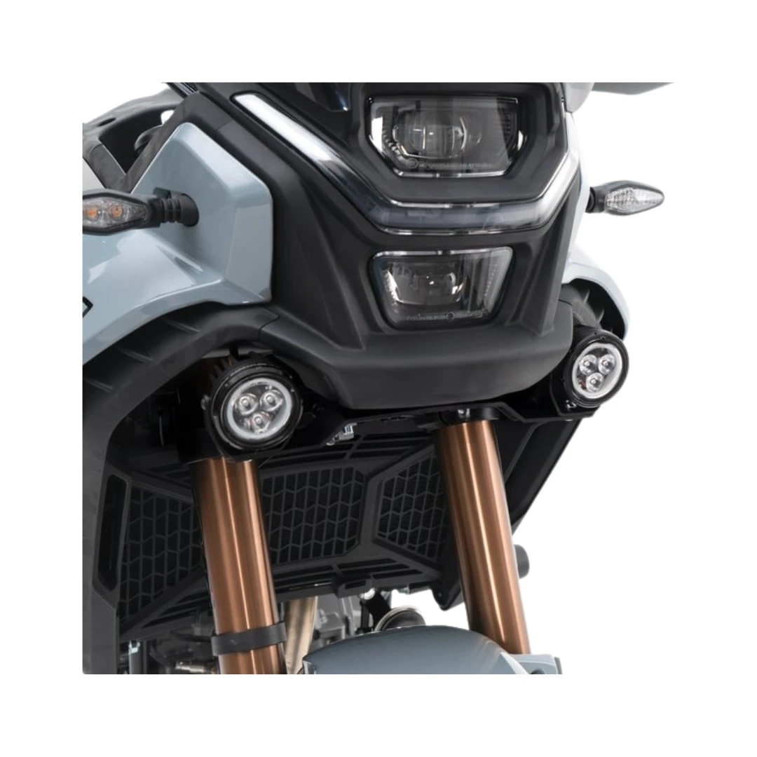Kitul suport proiectoare BARRACUDA dedicat modelului CF MOTO 450 MT este soluția ideală pentru montarea farurilor suplimentare fără modificări asupra motocicletei. Sistemul se fixează direct pe punctele de prindere originale, asigurând instalare rapidă și integrare perfectă cu designul adventure al motocicletei.