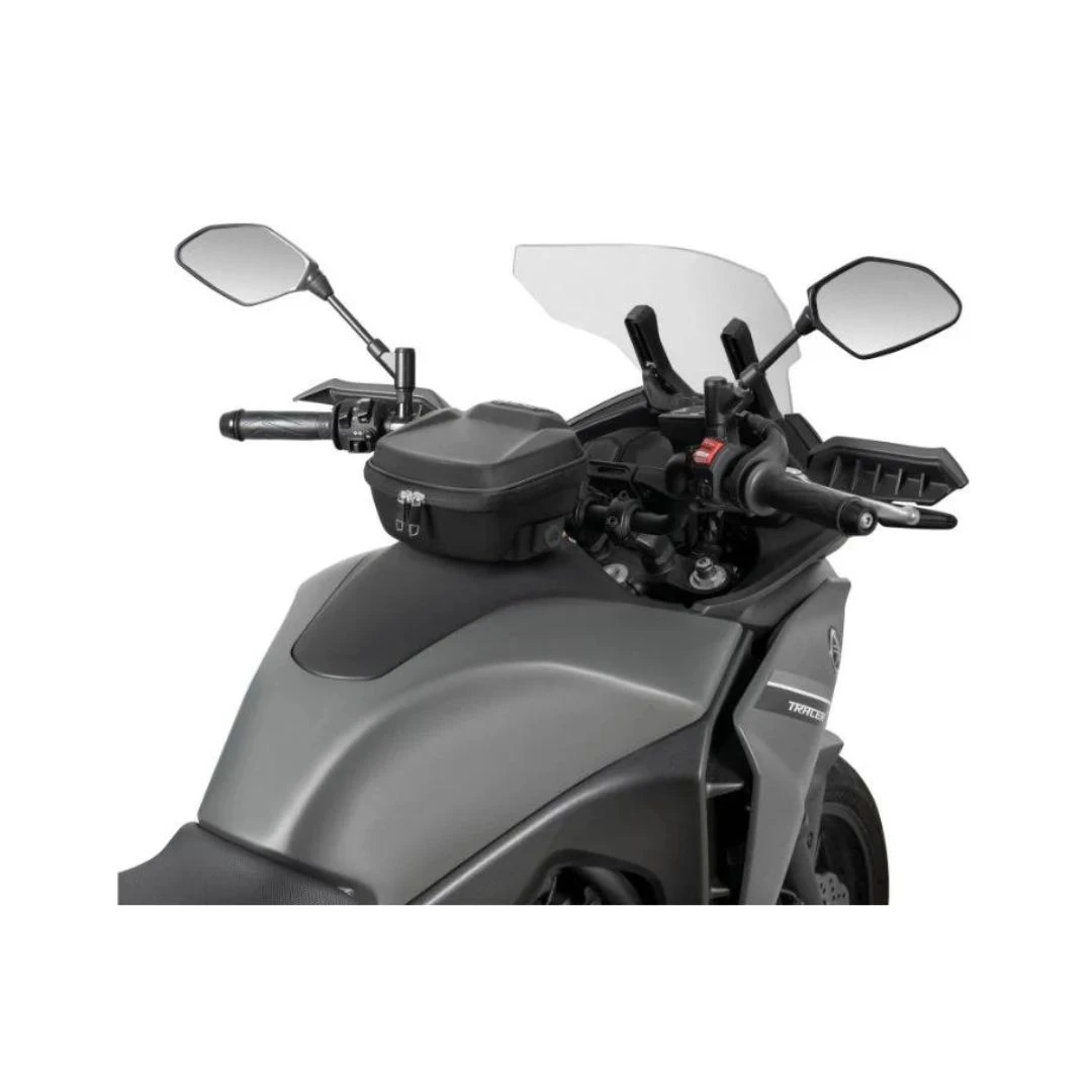 - Sistemul Click System oferă o metodă unică de fixare, înlocuind câteva șuruburi din jurul capacului rezervorului cu un suport în formă de potcoavă. Geanta poate fi apoi fixată și eliberată rapid printr-un singur buton, asigurând o utilizare ușoară și rapidă.