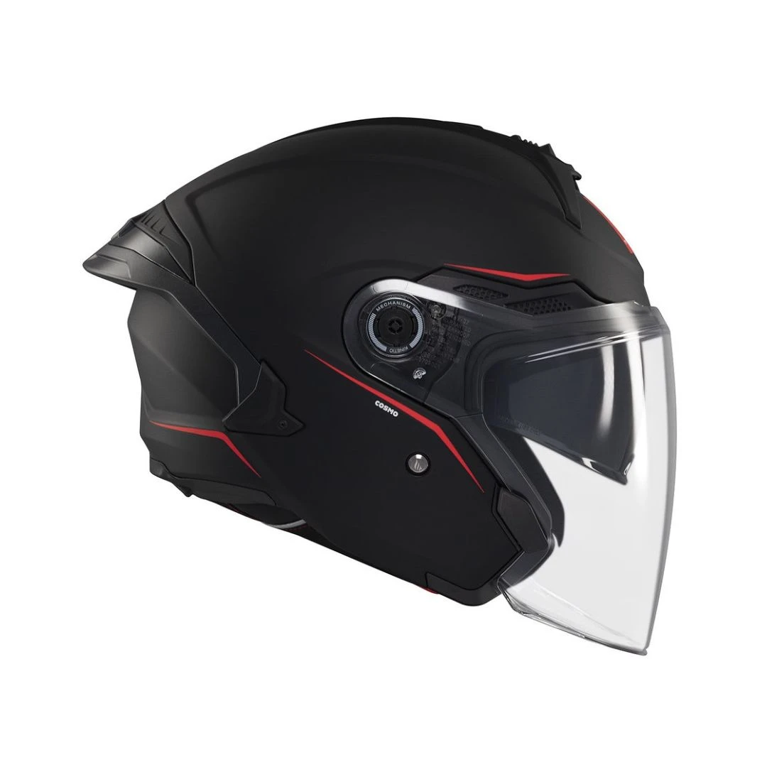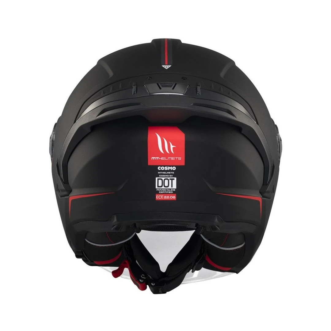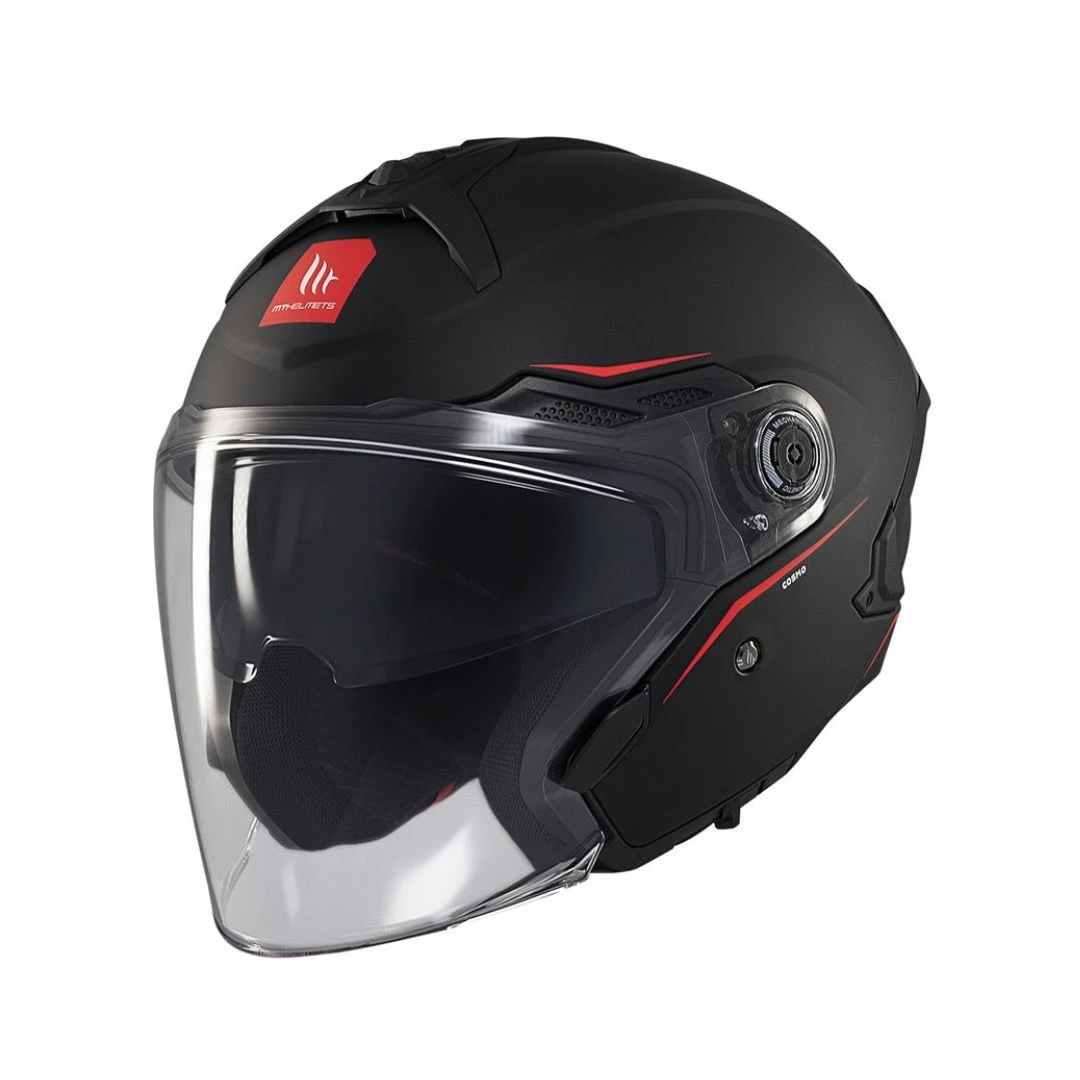 • modelul Cosmo SV incorporeaza ultimele cartacteristici si inovatii ale producatorului MT in materie de casti: sistemul de schimbare foarte rapid al vizierei QVSS, erodinamica optimizata cu sistem nou de ventilare, si 2 tipuri de spoilere.