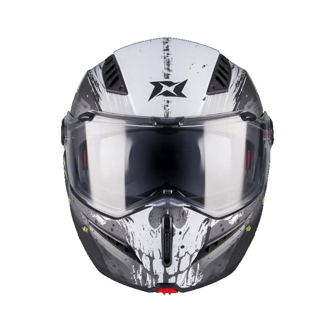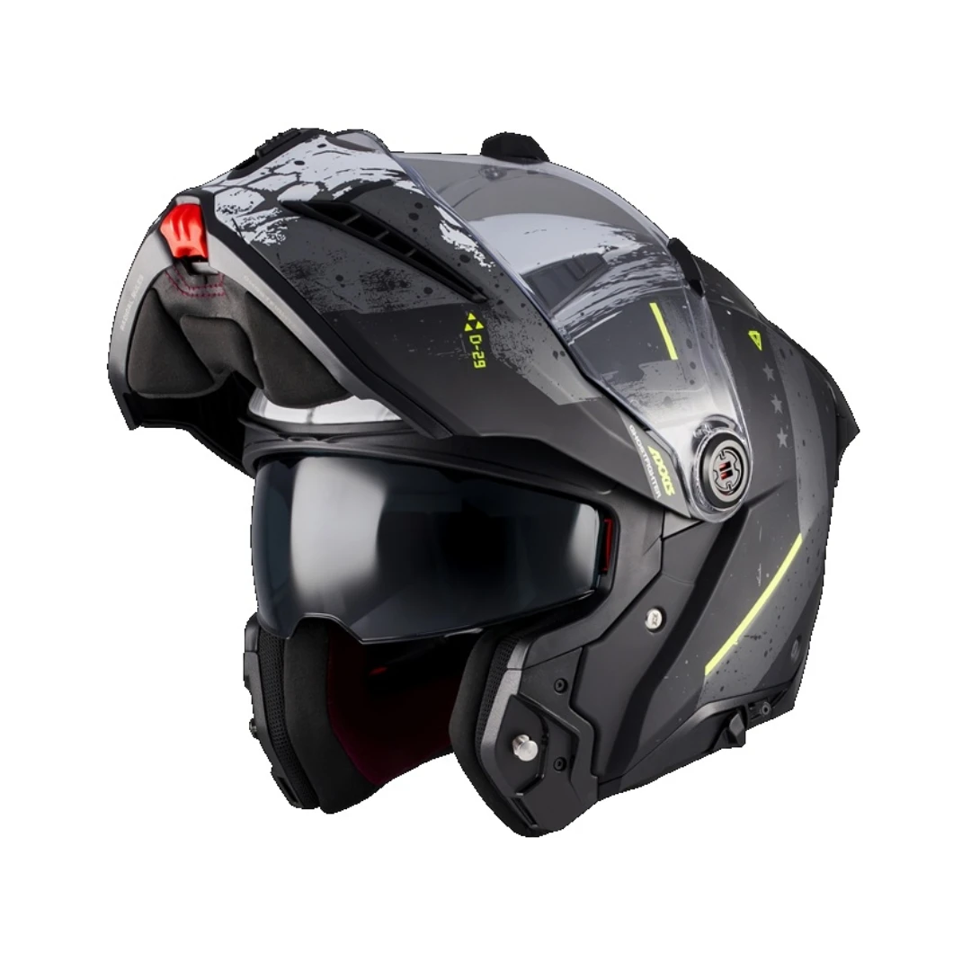 Axxis GhostFighter SV este o cască modulară (flip-up) modernă, concepută pentru motocicliștii care caută confort, siguranță și versatilitate în utilizarea zilnică. Designul agresiv și construcția robustă o transformă într-o alegere excelentă pentru riding urban, touring sau sport-touring. Modelul este echipat cu ochelari de soare integrați și este Pinlock Ready, fiind pregătit pentru utilizare în orice condiții meteo.