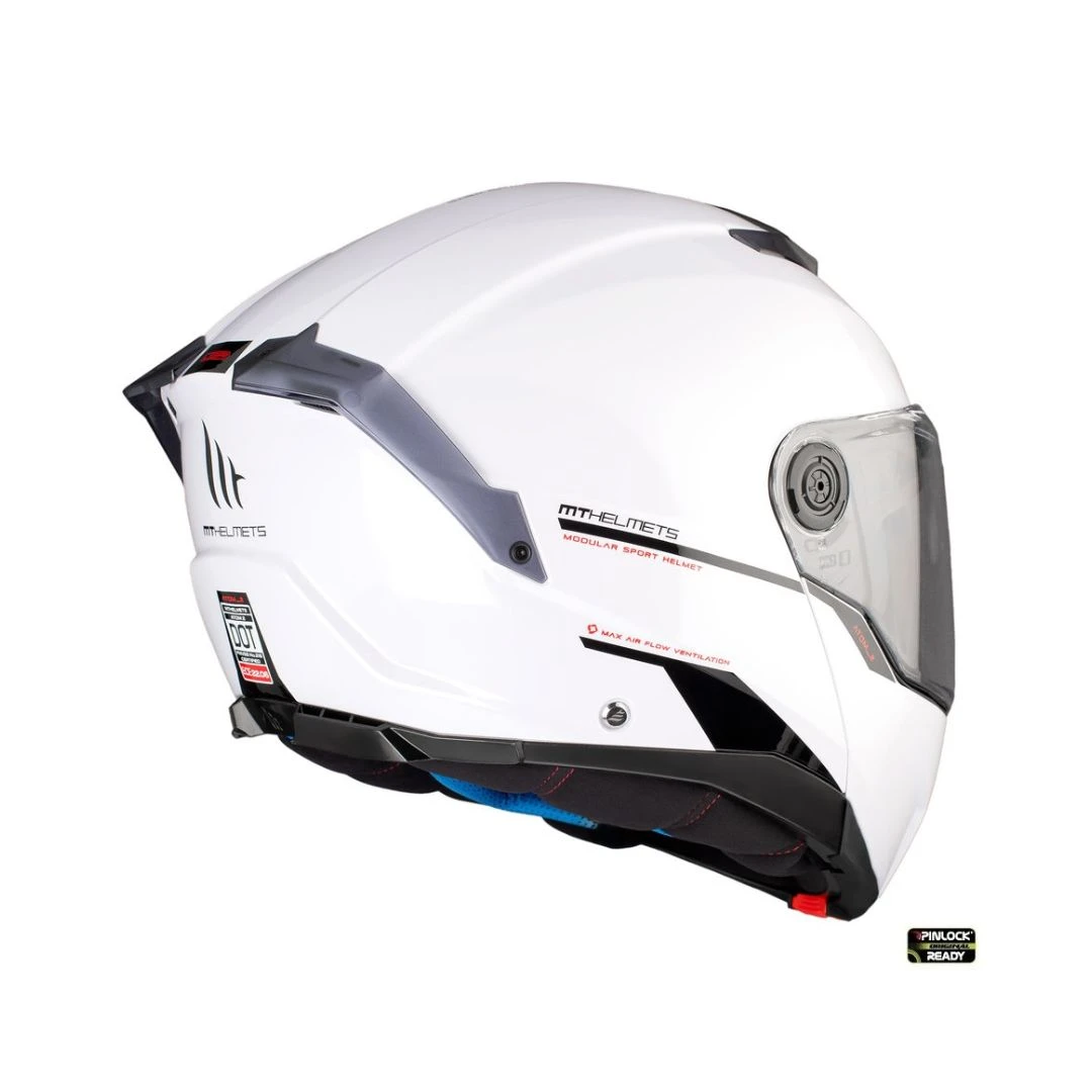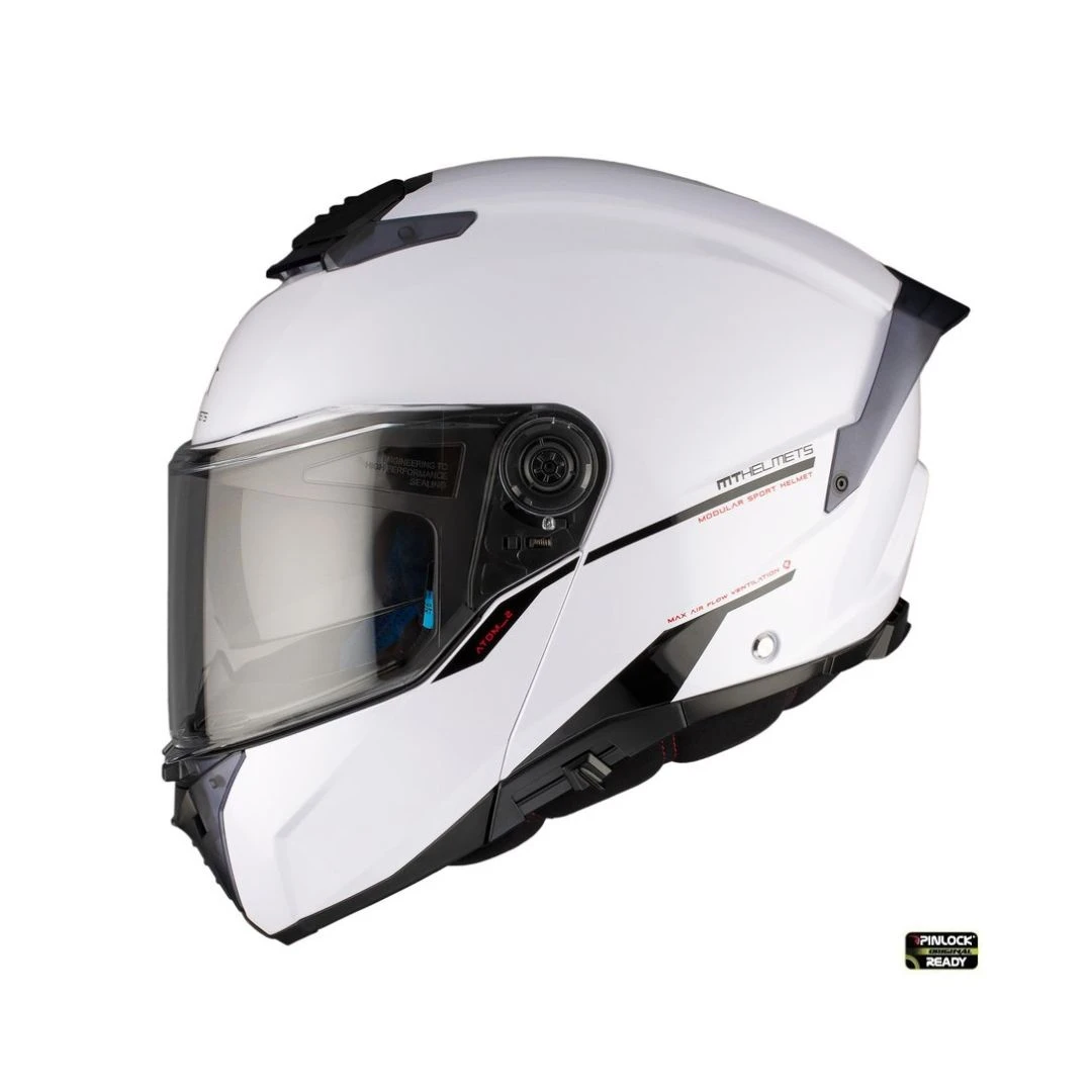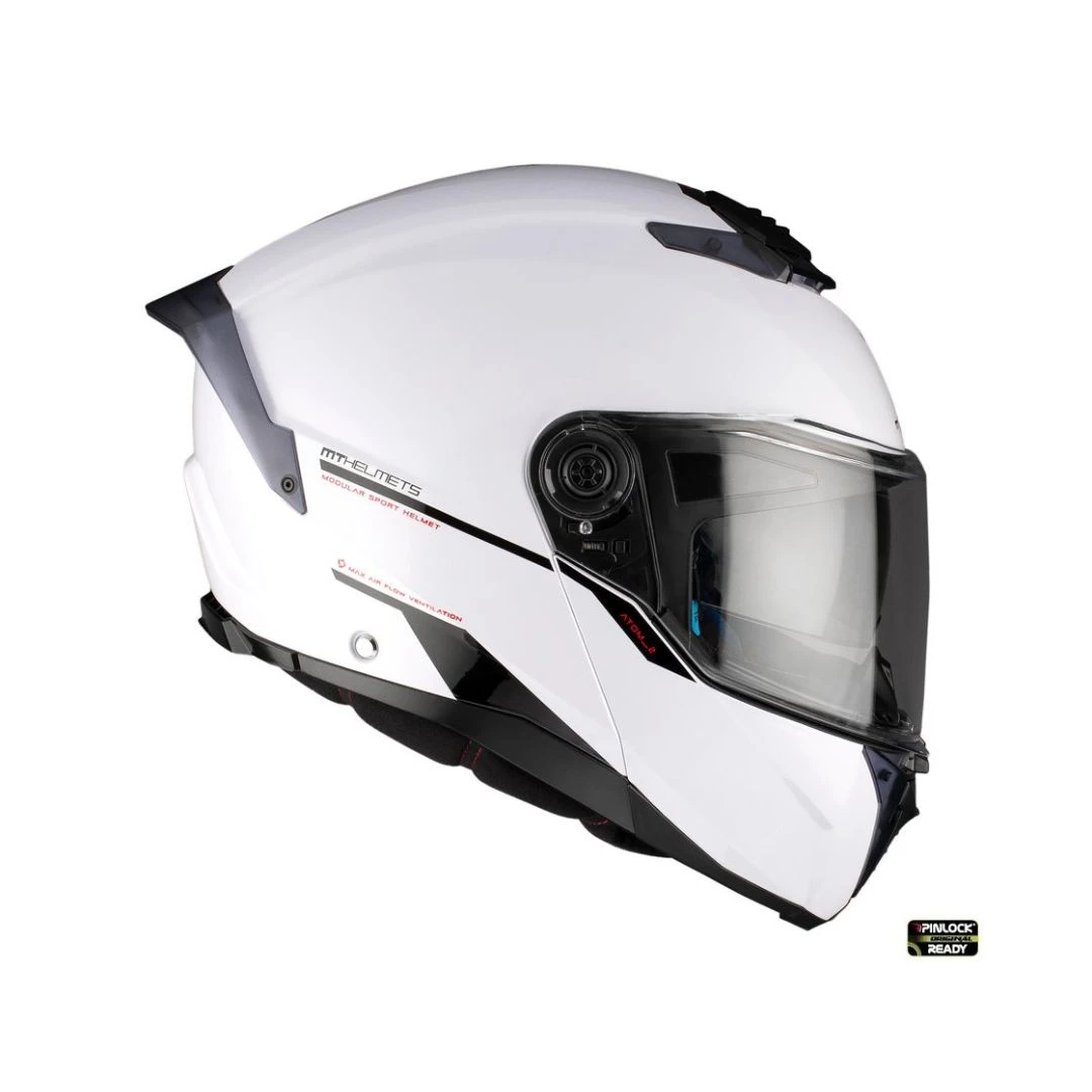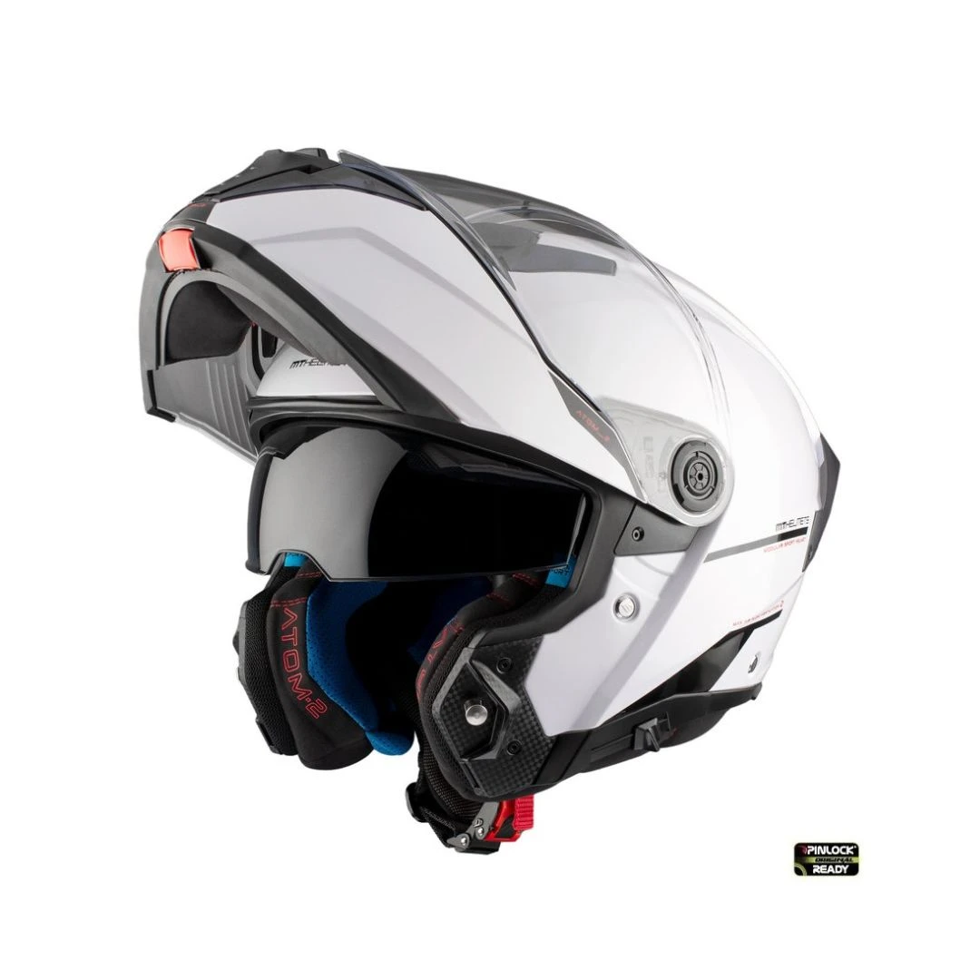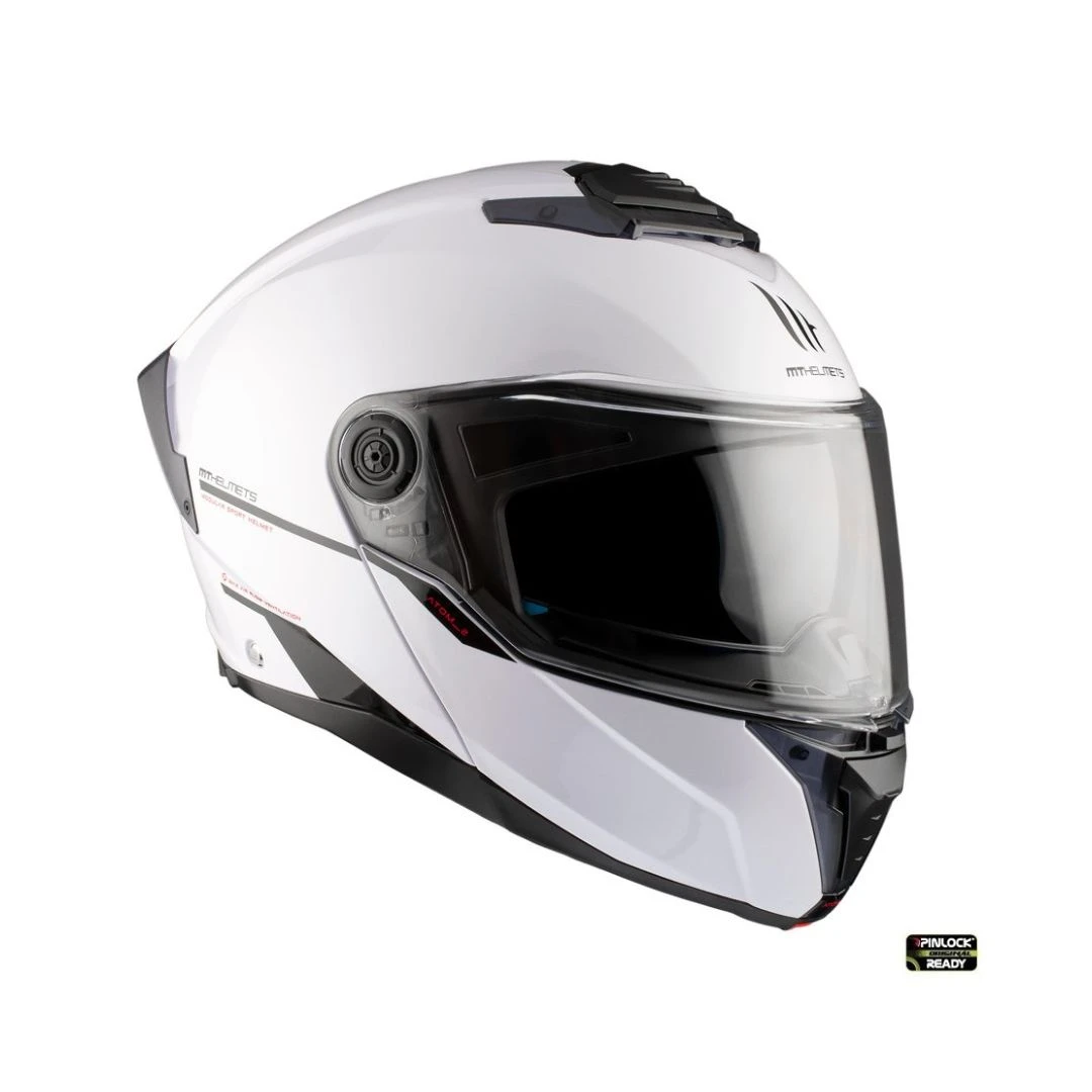 Casca Flip-up MT Atom 2 SV A0 alb lucios (ochelari soare integrati) Pinlock Ready – tip viziera: MT-V-35