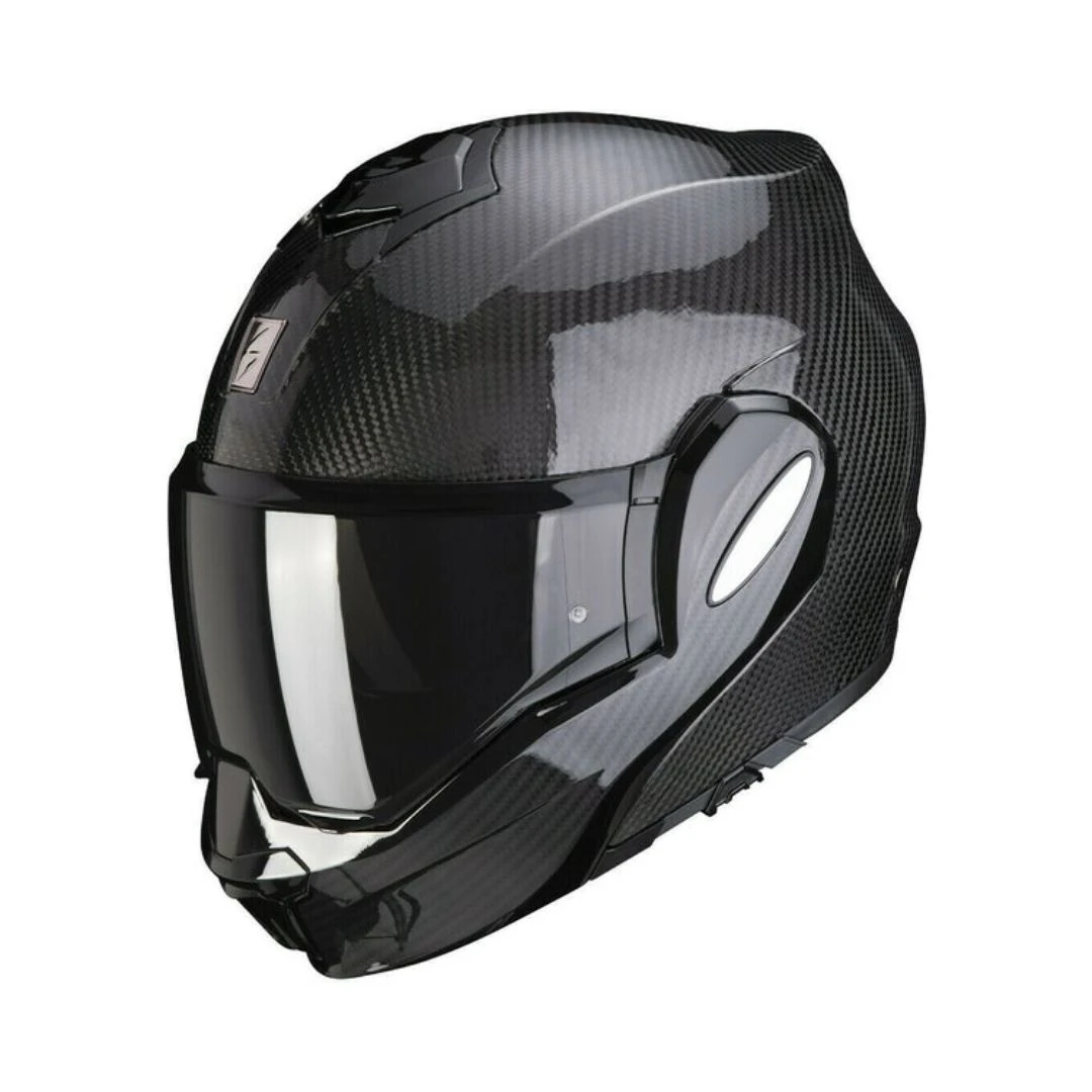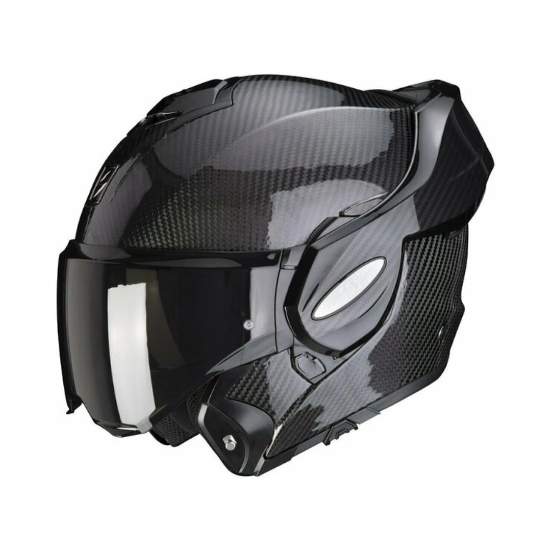 Casca SCORPION EXO-TECH CARBON SOLID este capodopera modulară a producătorului Scorpion, de această dată într-o carcasă foarte ușoară, fabricată din carbon. EXO-TECH CARBON este o cască ușoară, modulară, cu o ergonomie intuitivă și caracteristici utile, plus un sistem de închidere pentru bărbie pentru o siguranță superioară. Designul minimalist al carcasei, elegant și fluid, cu aspect de cască integrală, este completat de eleganța suprafeței premium țesute din fibră de carbon, adăugând o noblețe remarcabilă. EXO-TECH CARBON vine cu un suport EXO-COM care armonizează perfect casca cu sistemul de comunicare disponibil ca accesoriu separat.
