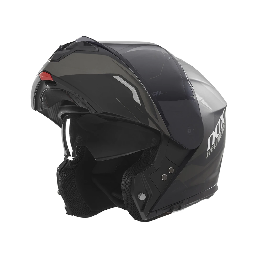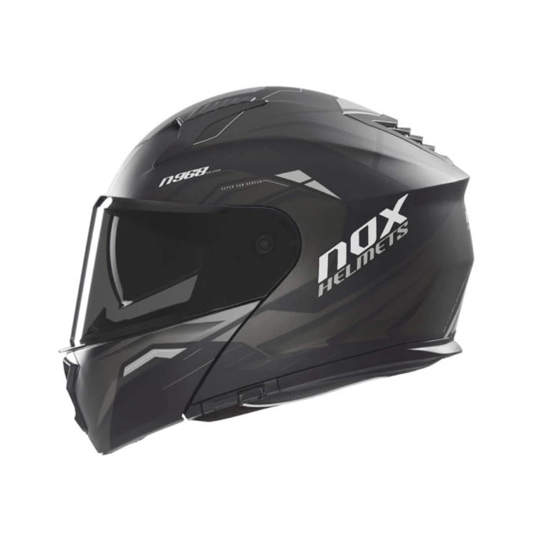 Casca NOX N968 ULTRA este un model flip-up (modular), ce permite conversia rapida din casca integrala in casca open-face (Jet) printr-o simpla apasare de buton. Cu un design modern, ventilatie avansata si vizor dublu retractabil, aceasta casca este perfecta pentru motociclistii care doresc flexibilitate, siguranta si confort maxim.