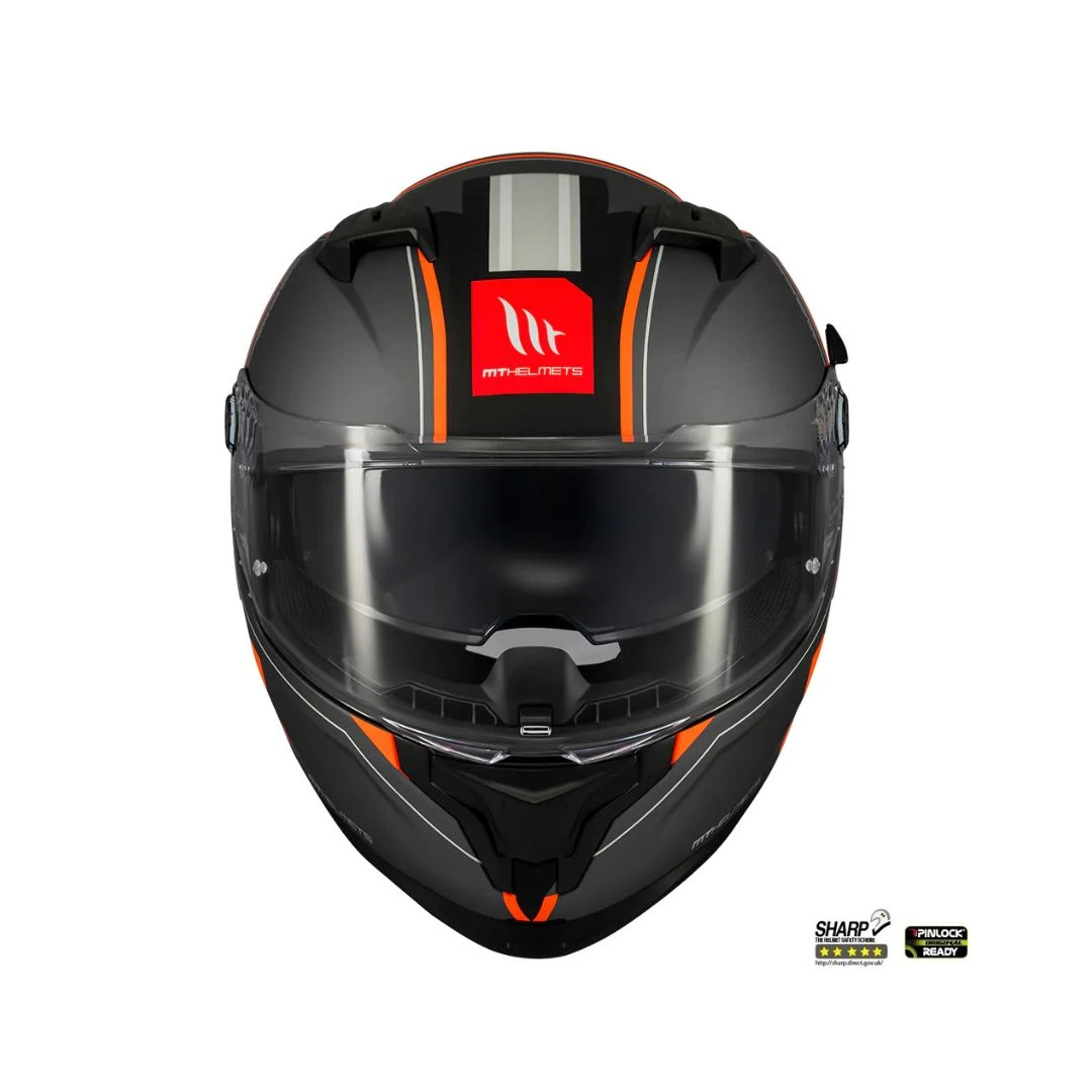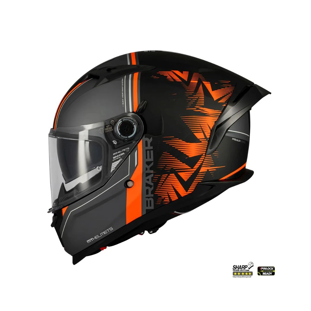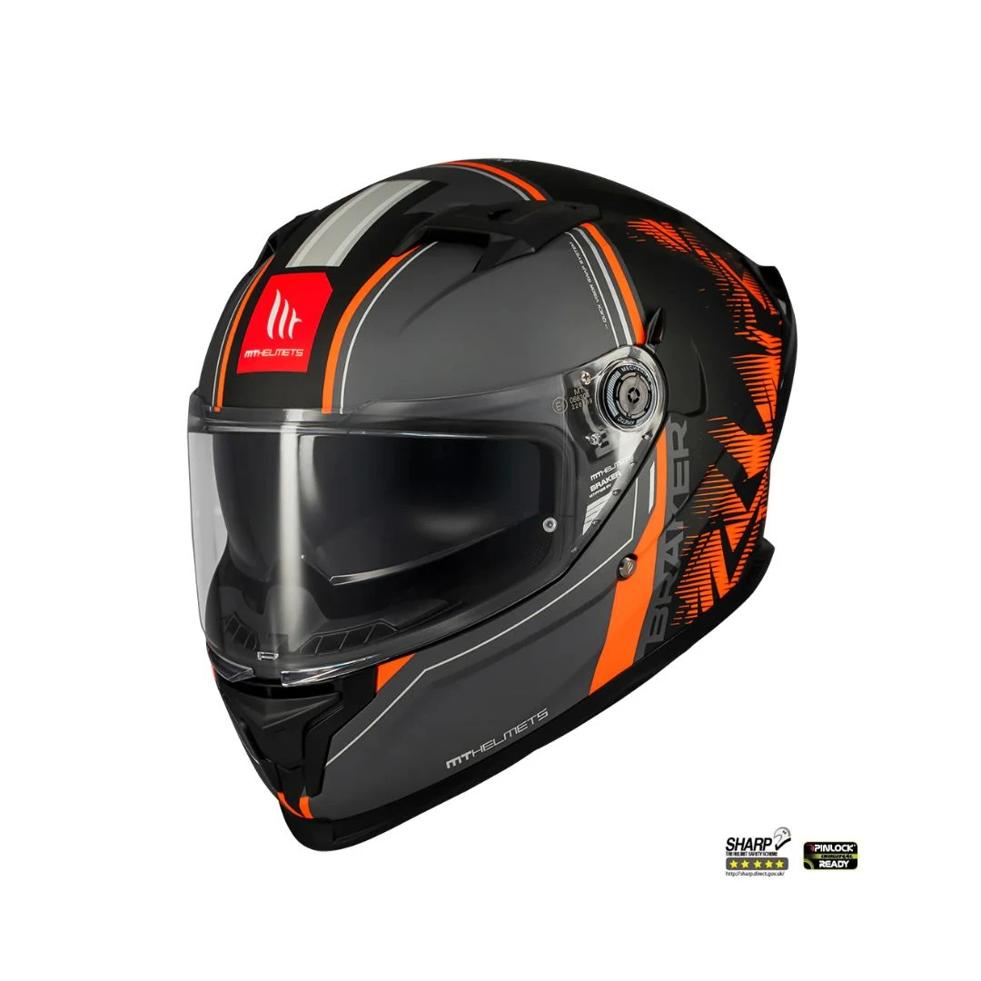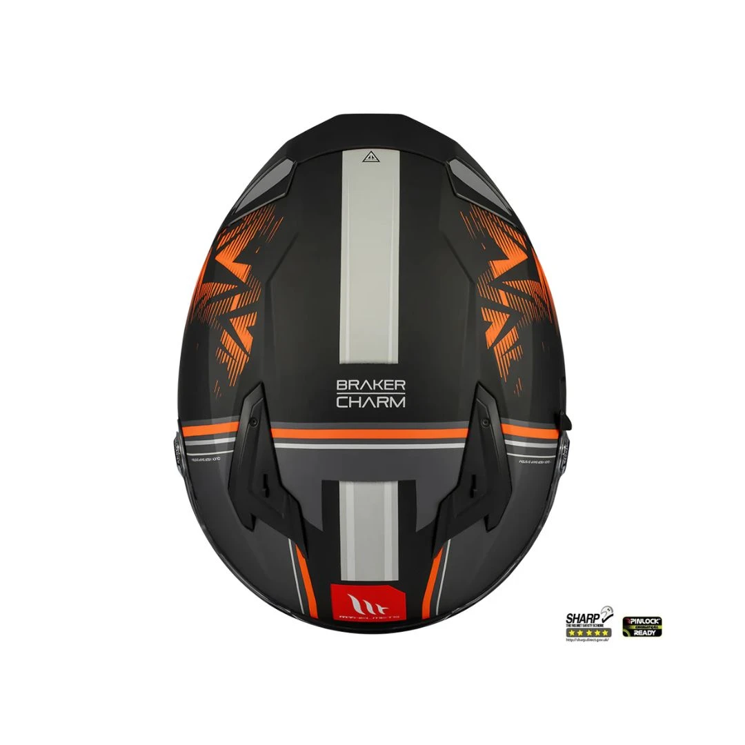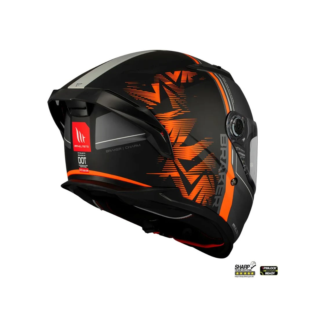 Casca integrala MT Braker SV Charm B4 negru/portocaliu mat (ochelari soare integrati) – tip viziera: MT-V-28B – DKS435 – punctaj maxim SHARP Test – 5 stele