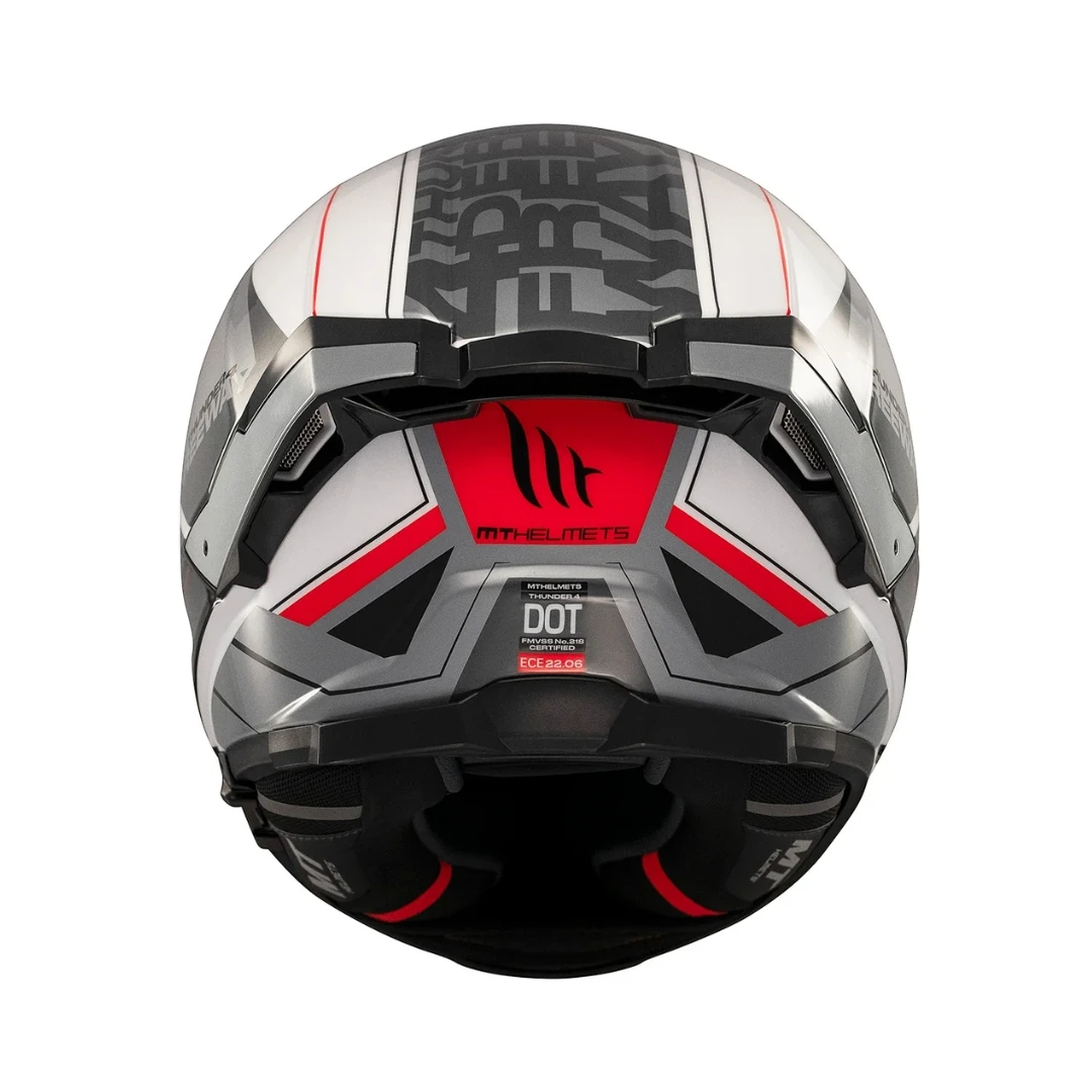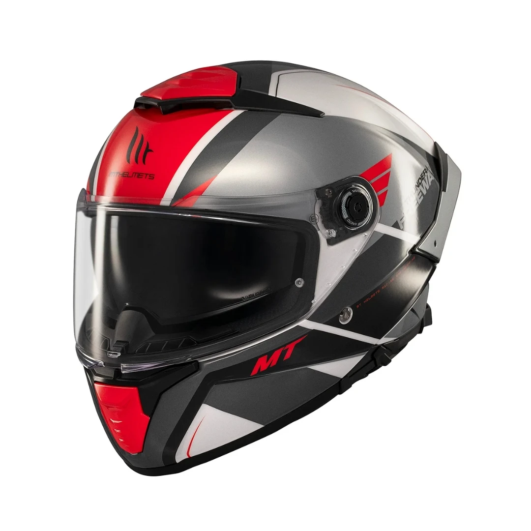 MT Thunder 4 SV este una dintre cele mai avansate căști integrale sport-touring din gama MT Helmets, fiind primul model al brandului echipat cu ochelari de soare integrați și omologat conform noilor standarde europene ECE 22.06. Concepută să ofere siguranță maximă, confort excelent și funcționalitate modernă, această cască reprezintă cel mai bun raport preț-calitate din portofoliul MT.