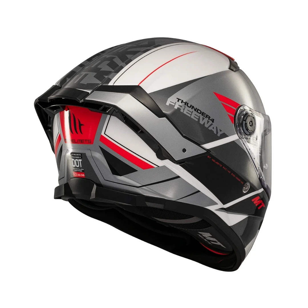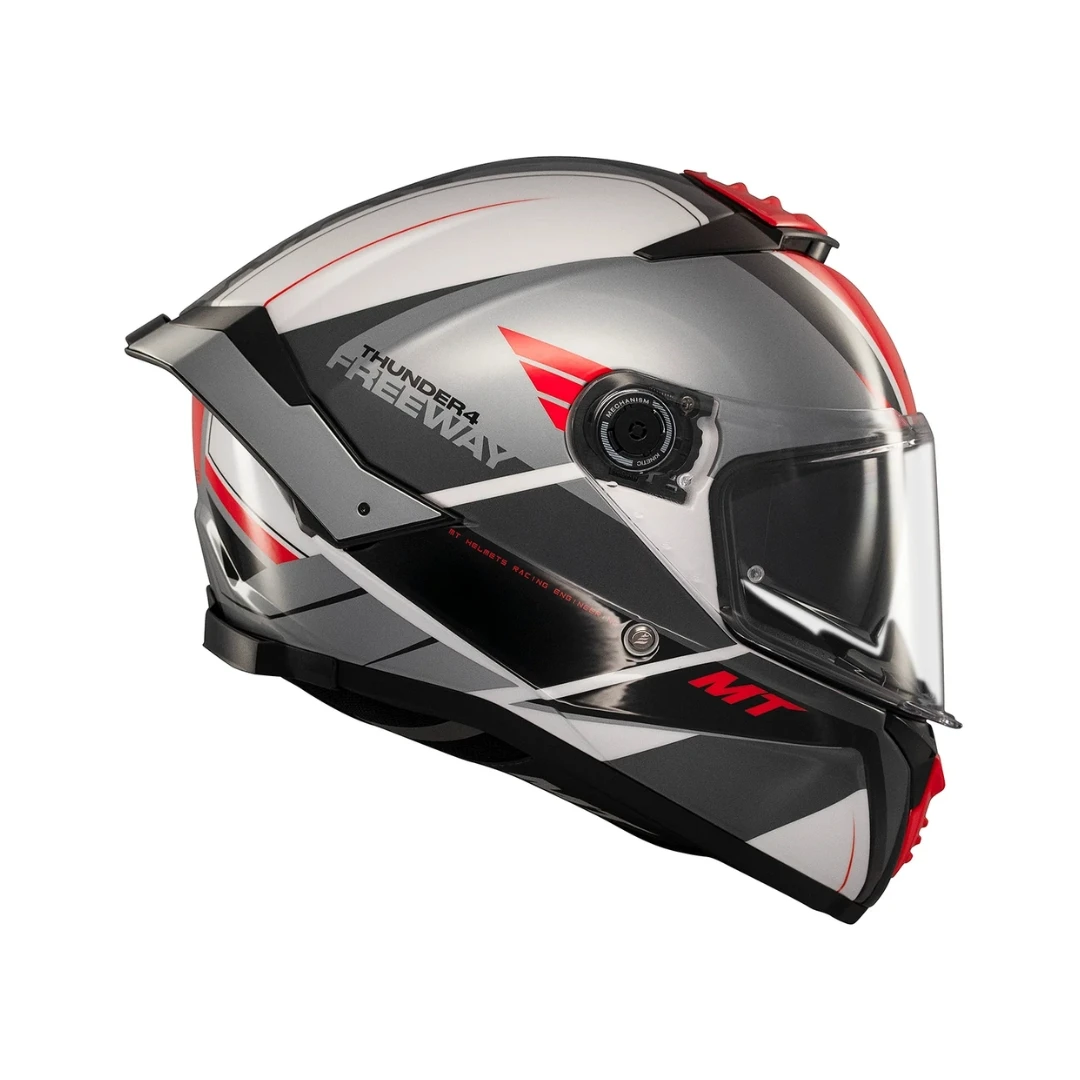 MT Thunder 4 SV Freeway A5 este alegerea ideală pentru motocicliștii care vor o cască integrală modernă, sigură, perfect ventilată și pregătită pentru orice tip de pilotaj – de la sport-touring la utilizare zilnică urbană.