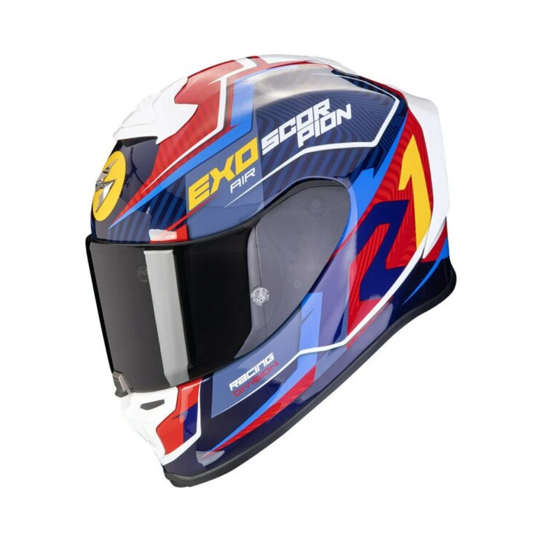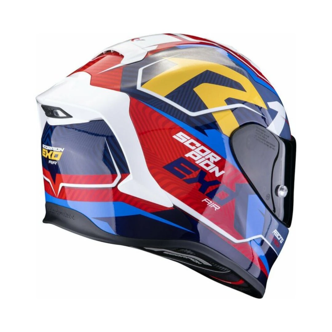 - AIRFIT®: Conceptul brevetat de Scorpion permite ajustarea mărimii căștii prin două membrane situate în zona obrajilor, umplute cu aer prin intermediul unei pompe aflate la nivelul bărbiei. Sistemul asigură o potrivire perfectă chiar și după utilizare îndelungată.