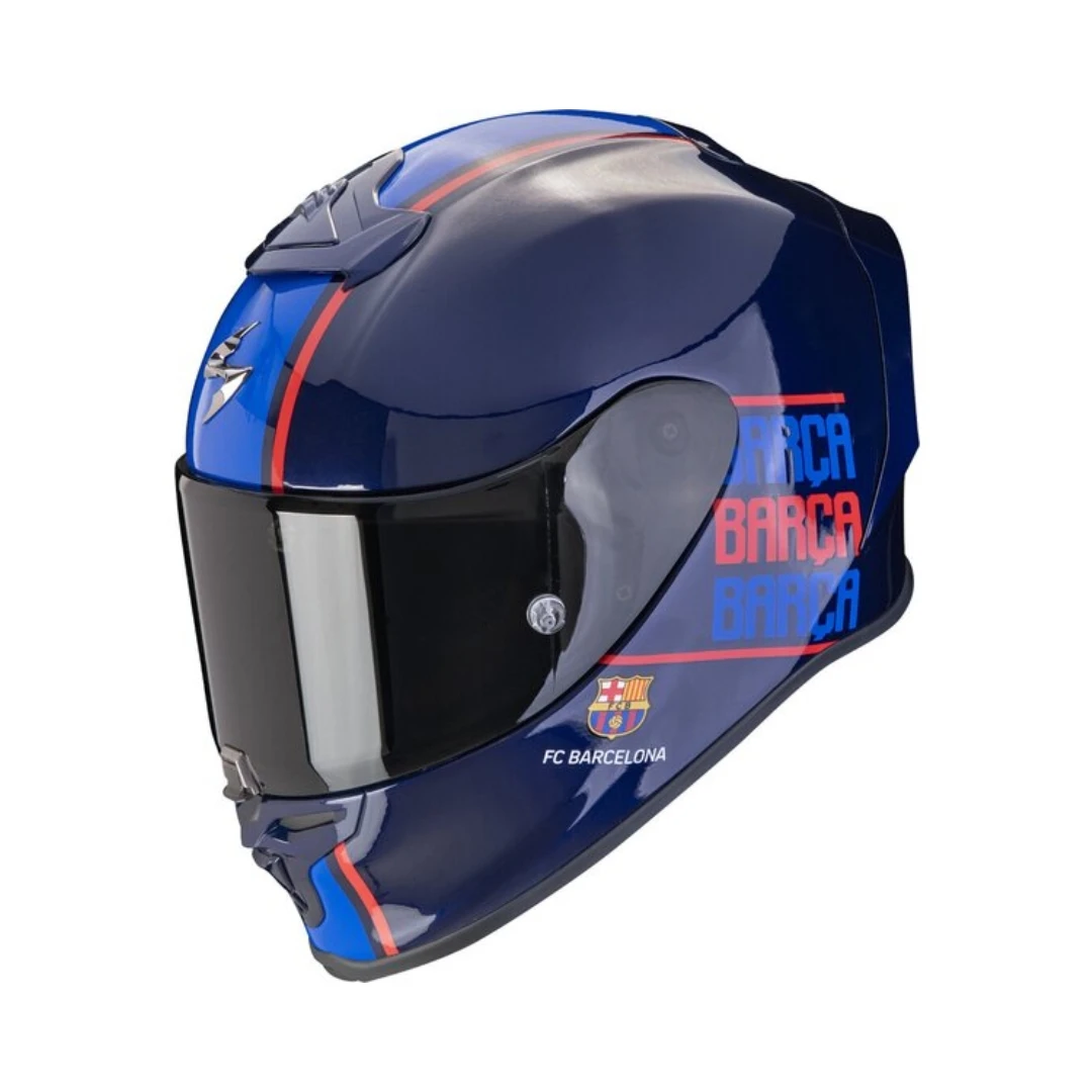 - Cască Scorpion EXO-R1 EVO AIR FC Barcelona – cu vizieră clară montată