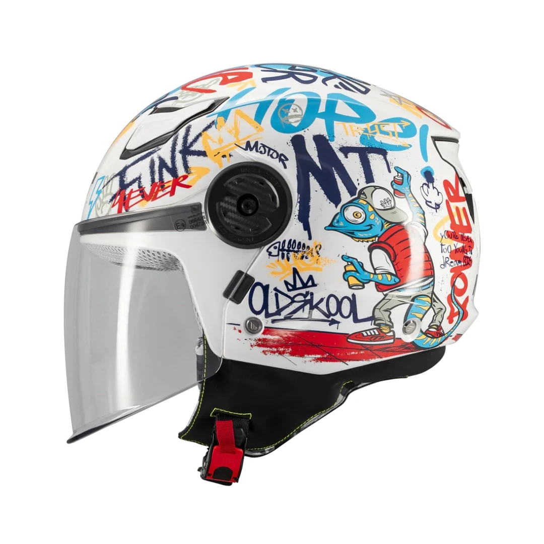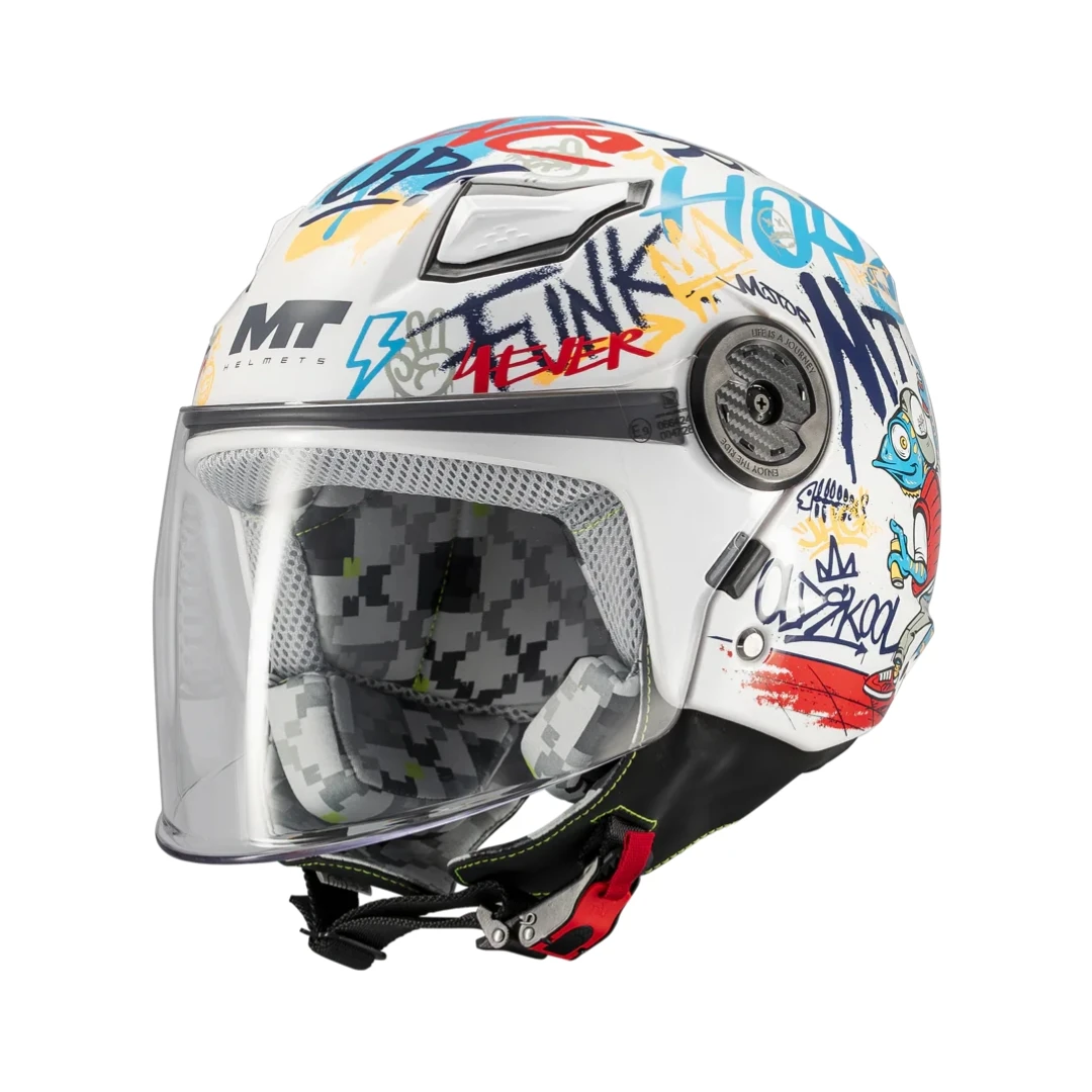 Casca open face MT Lite Crew A5 este special concepută pentru copii, oferind protecție certificată și confort optim pentru cei mai mici pasageri sau rideri. Dezvoltată de MT Helmets, această cască jet depășește standardul actual ECE 22.06, integrând tehnologii moderne adaptate nevoilor copiilor.