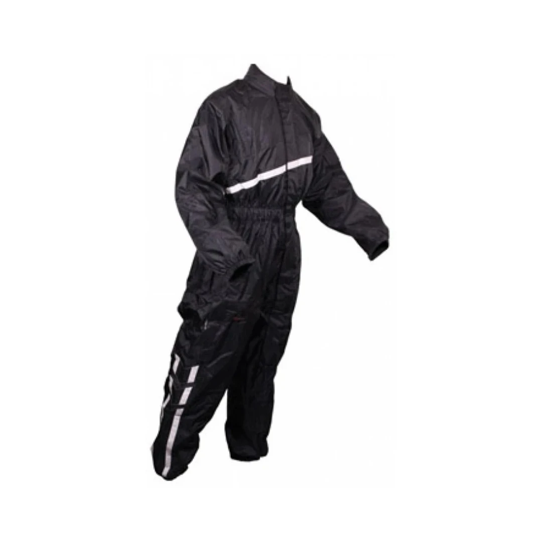 Costum de ploaie dintr-o singură piesă. Echipat cu elemente reflectorizante, îmbunătățind vizibilitatea motociclistului față de ceilalți utilizatori ai drumului în timp ce călătoresc în condiții meteorologice dificile.