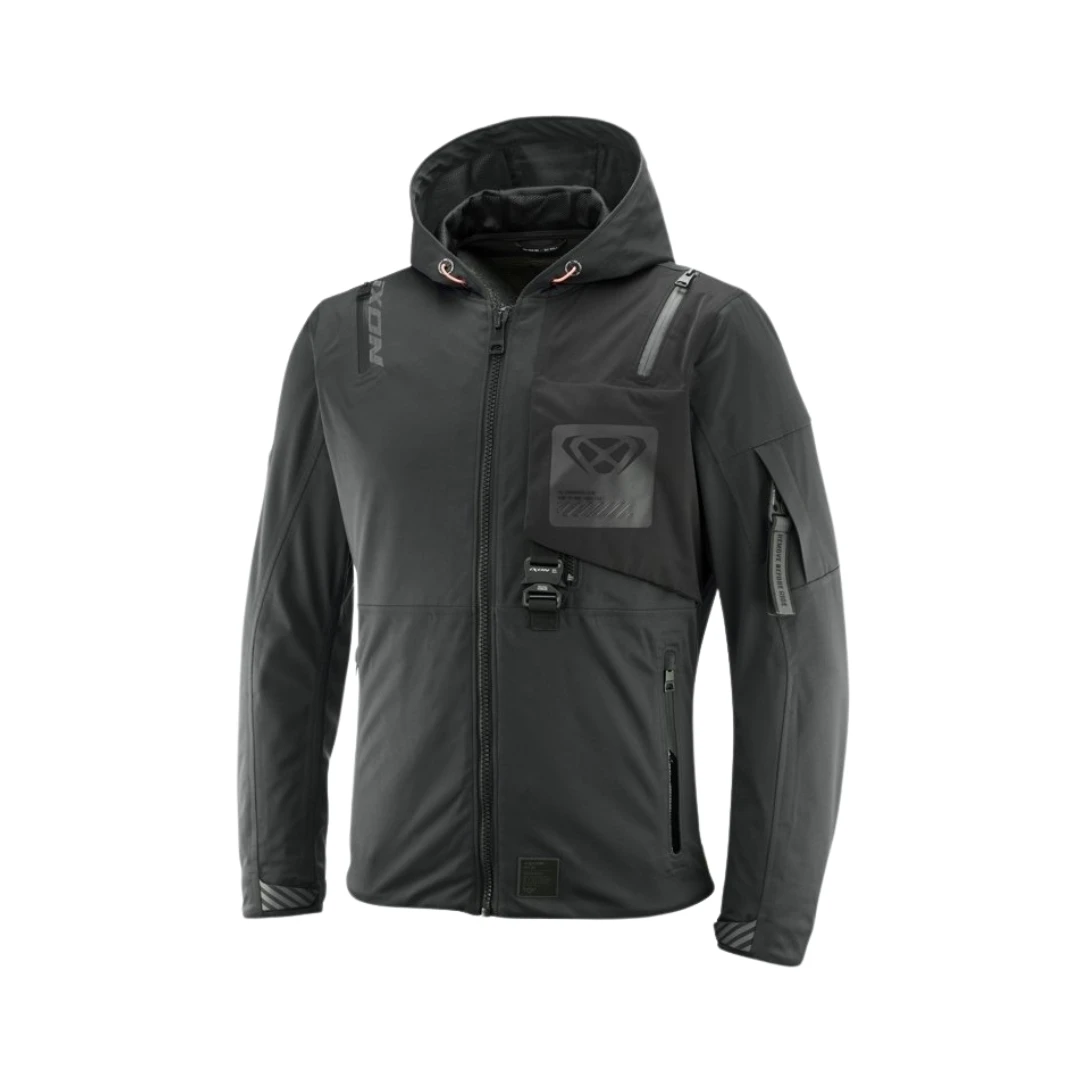 Geacă moto bărbați Ixon M-Quarter MS – touring/adventure/urban, laminată waterproof XDRY3L, protecții CE nivel 1, ventilații multiple. Design urban, confort premium.
