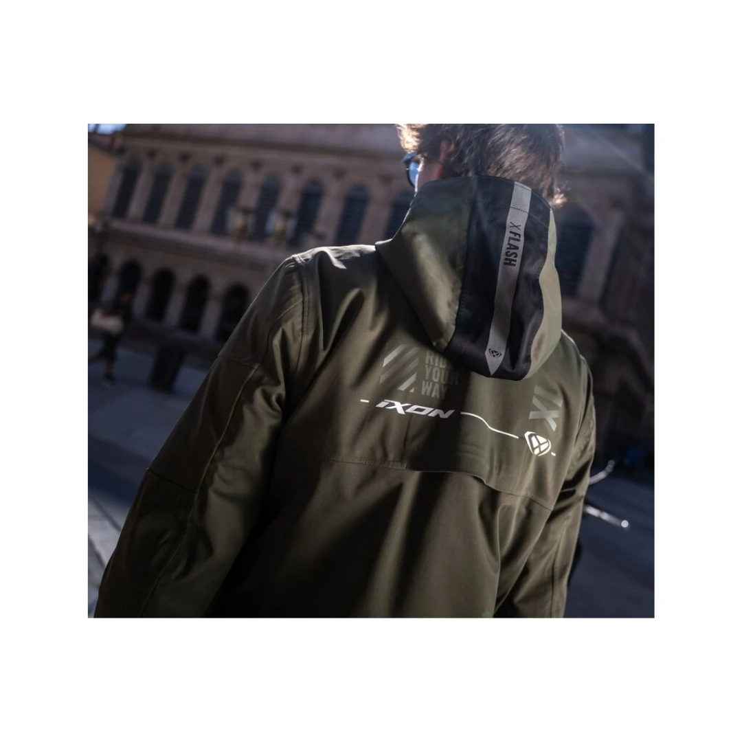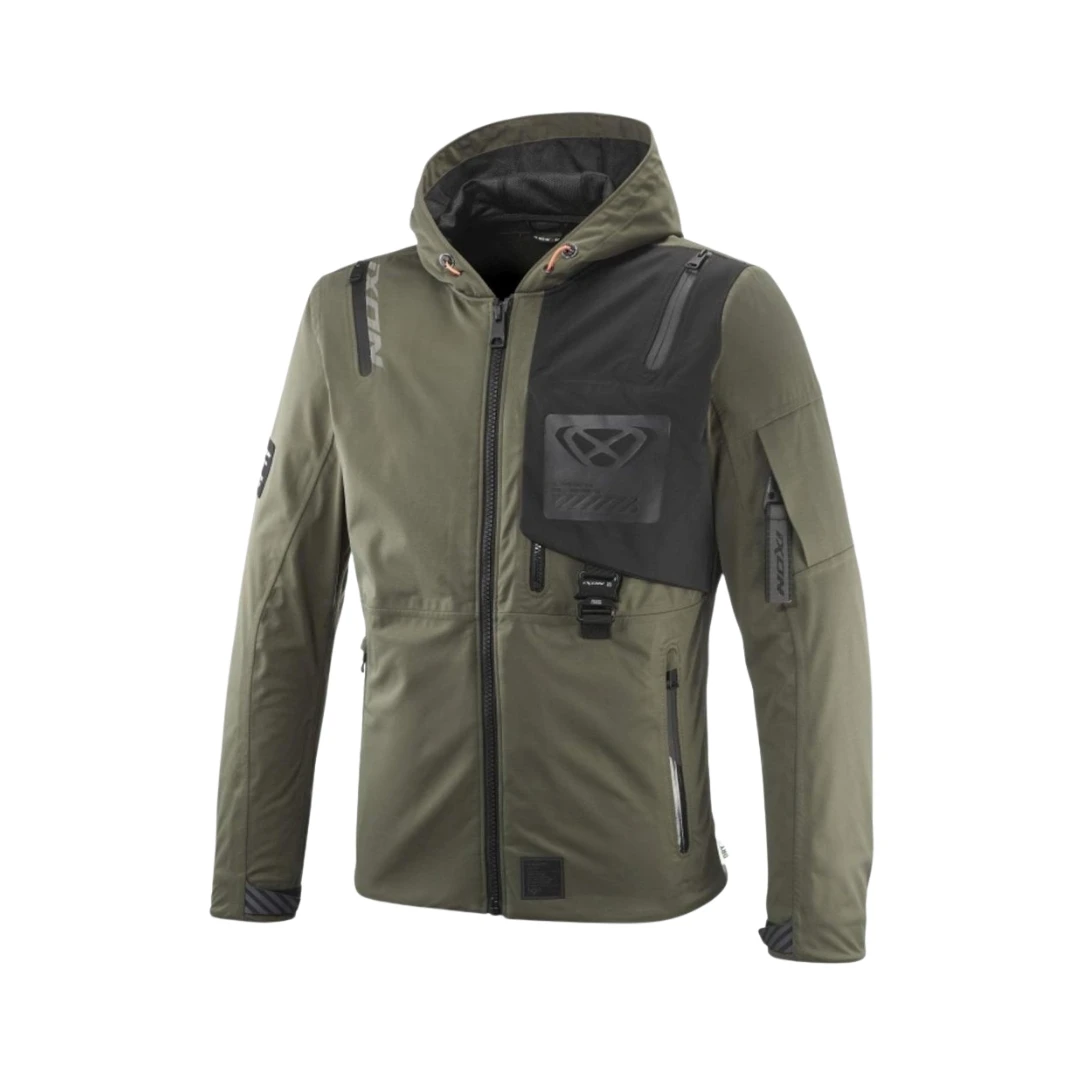 Geacă moto bărbați Ixon M-Quarter MS – touring/adventure/urban, laminată waterproof XDRY3L, protecții CE nivel 1, ventilații multiple. Design urban, confort premium.