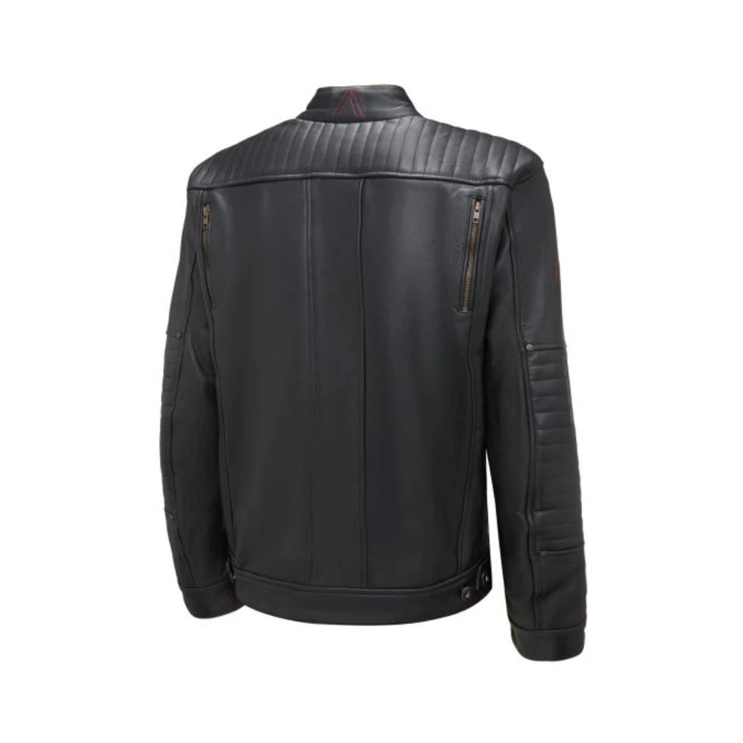 Confecționată din piele moale de capră, foarte plăcută la atingere, geaca oferă libertate de mișcare și rezistență în utilizare. Cusăturile decorative de pe mâneci și umeri completează caracterul retro-modern al modelului.